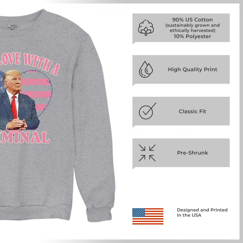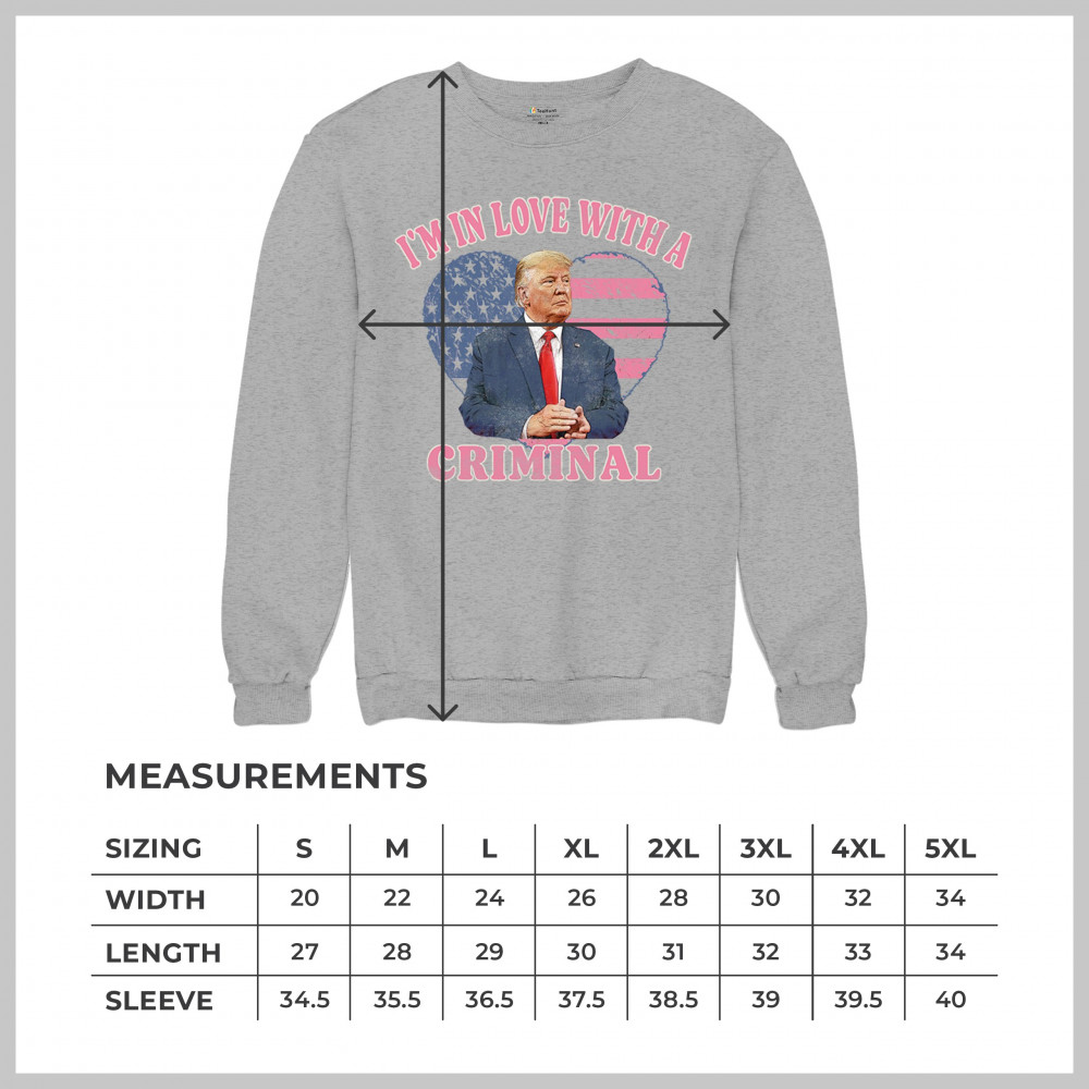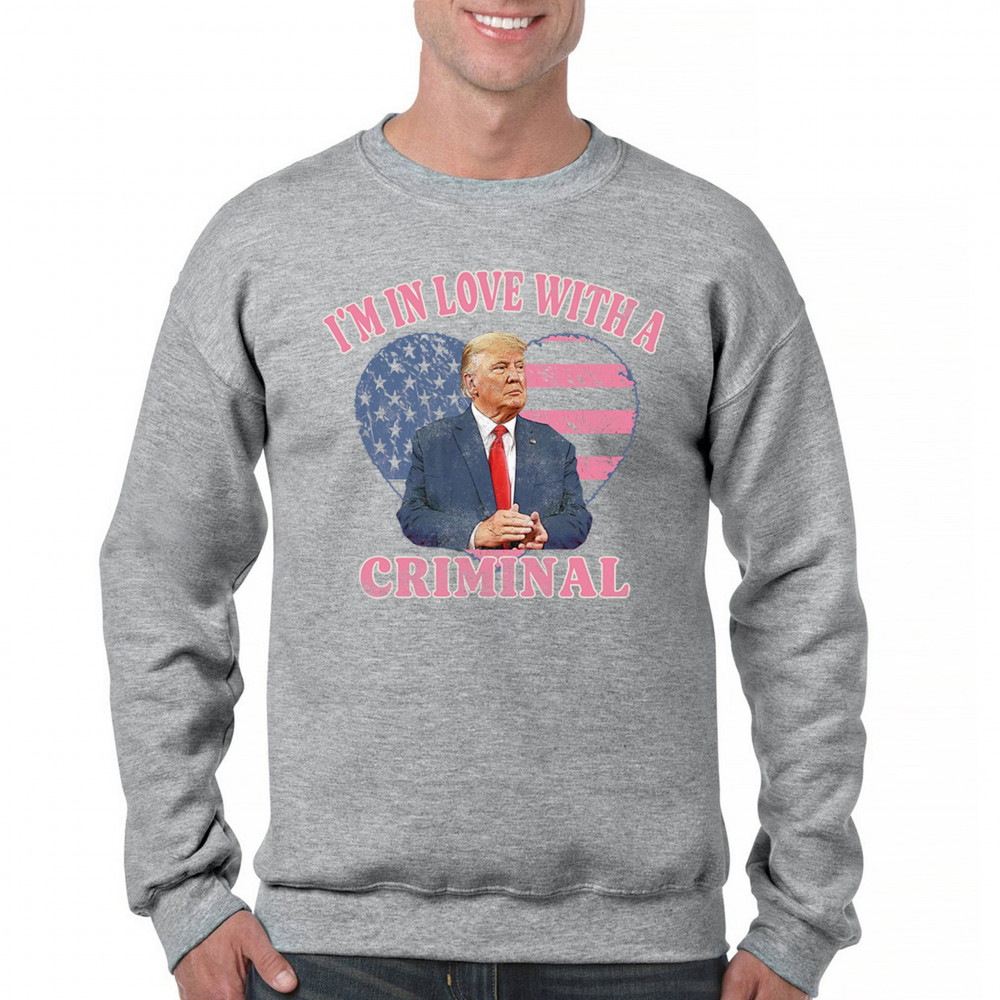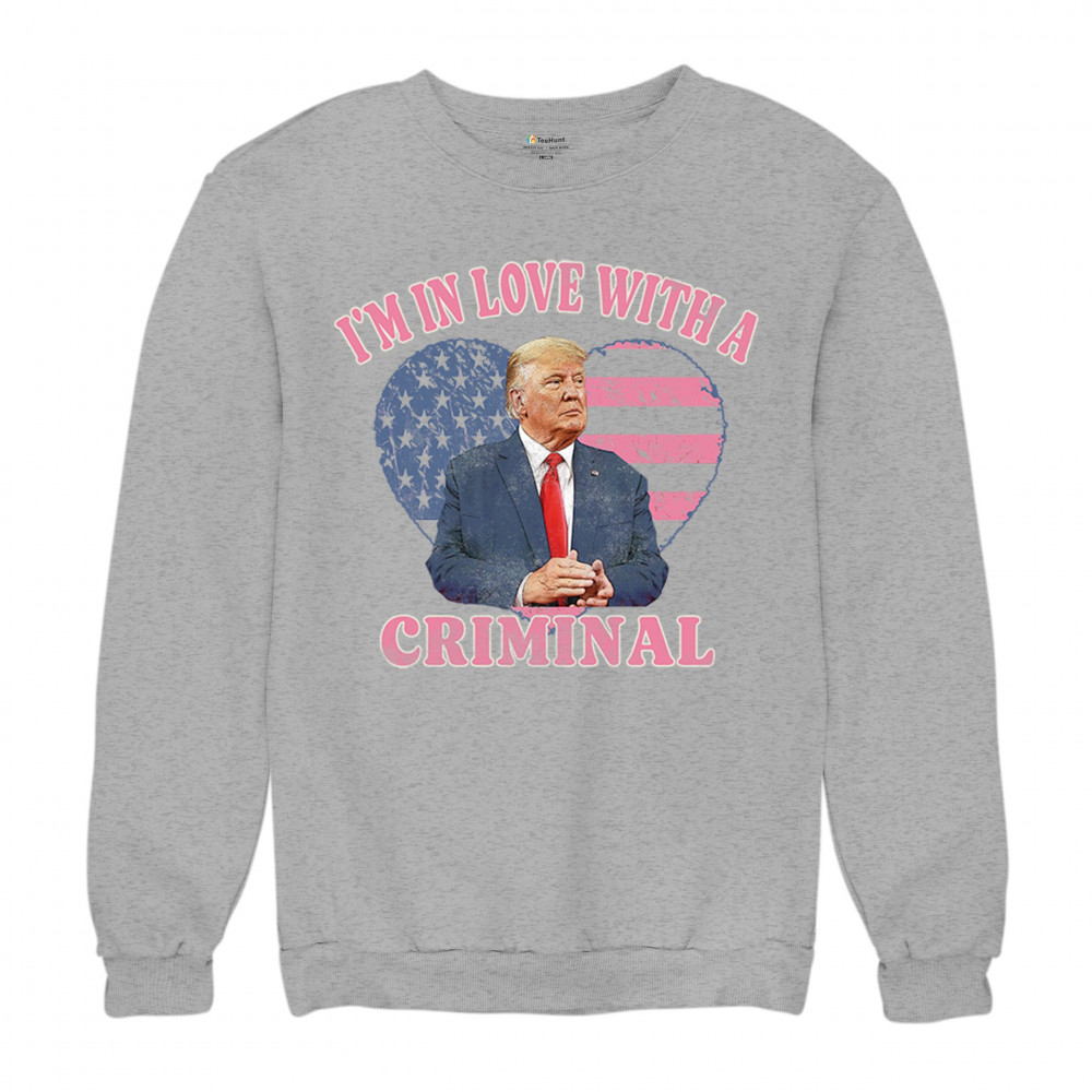 Support Trump with this "I'm in Love with a Criminal" design, embodying conservative values and America First ideals. Perfect for rallies and daily expression.