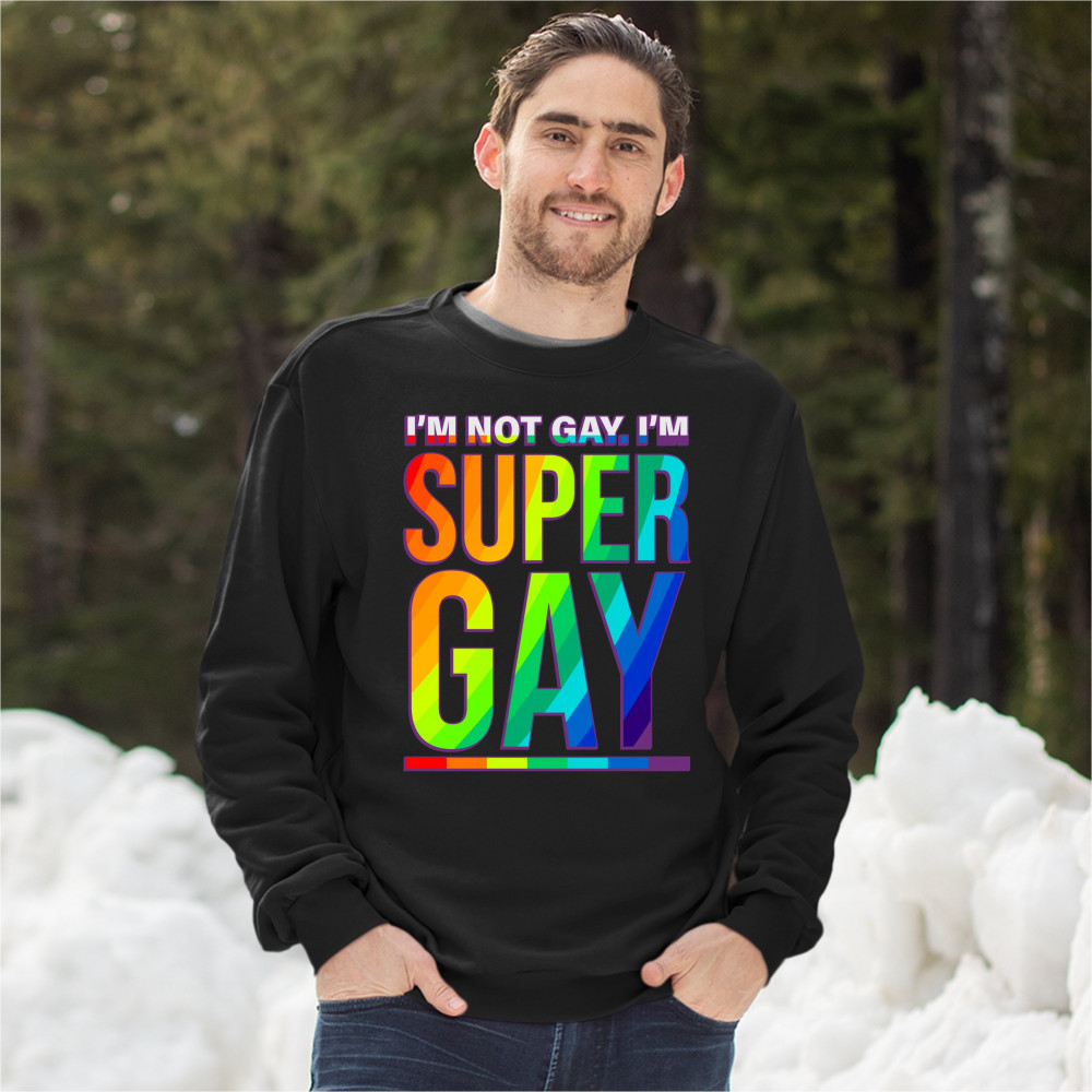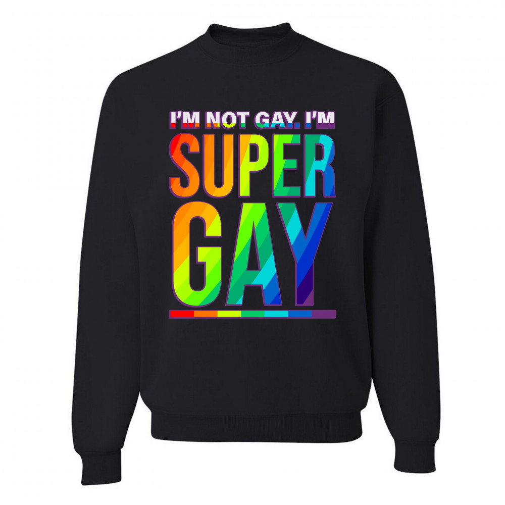I'M NOT GAY. I'M SUPER GAY sweatshirt funny lgbtq pride positivity crewneck black