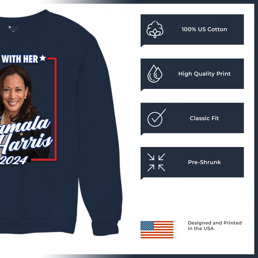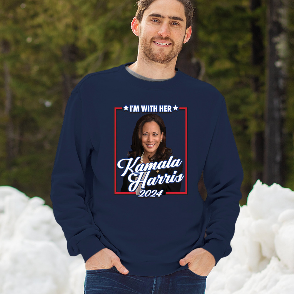 Stand with Kamala Harris in her 2024 presidential campaign with this vibrant design. Highlighting her commitment to progressive causes, this design is perfect for supporters of LGBTQ+ rights, women's rights, and social justice. Featuring the iconic "I'm With Her" slogan, it's a bold statement for anyone who believes in a brighter future. Wear it to rallies, events, or any day to show your support for Kamala Harris and her vision for America. A great addition to any supporter’s collection!
