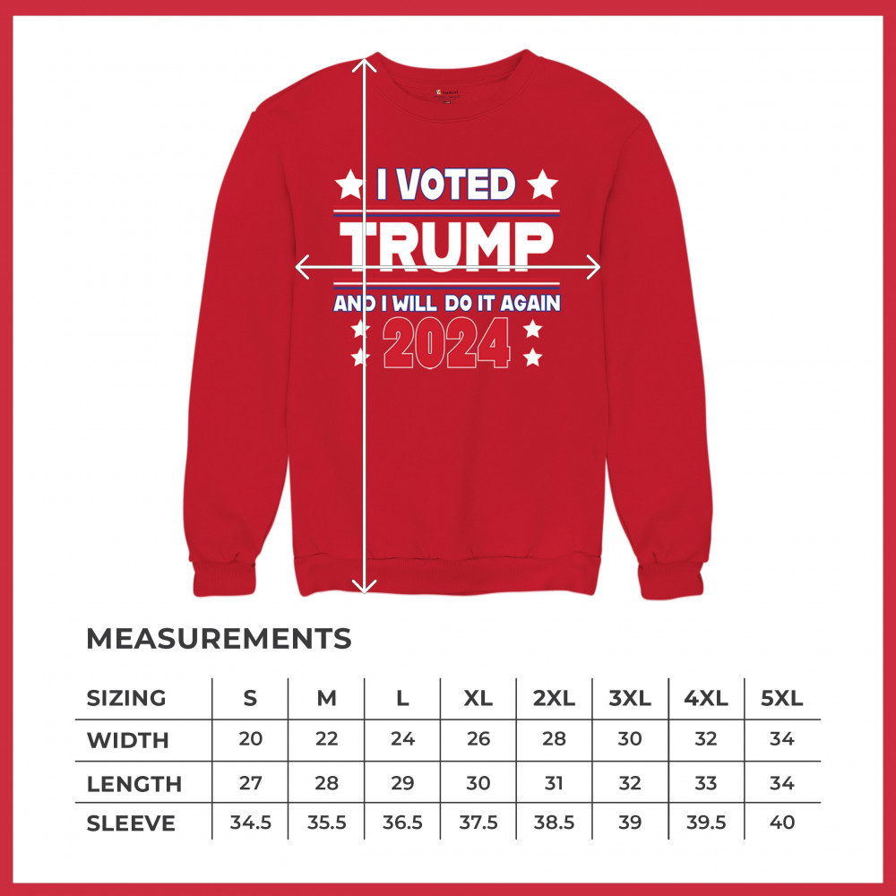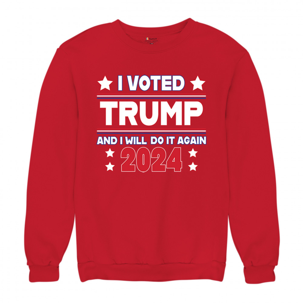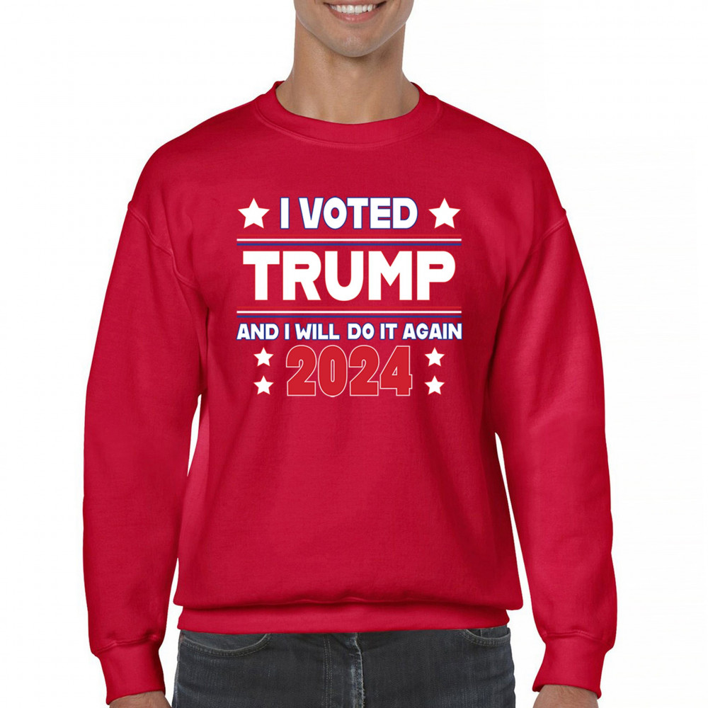 Stand tall as a dedicated Trump supporter with our "I Voted Trump and Will Do It Again 2024" design, showcasing your unwavering commitment to the America First agenda. Let the world know that you stand ready to cast your vote for President Trump once more