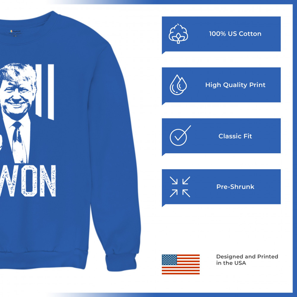 Celebrate Trump’s victory with this bold "I Won" design. Perfect for conservative supporters and patriots backing the 47th President of America.