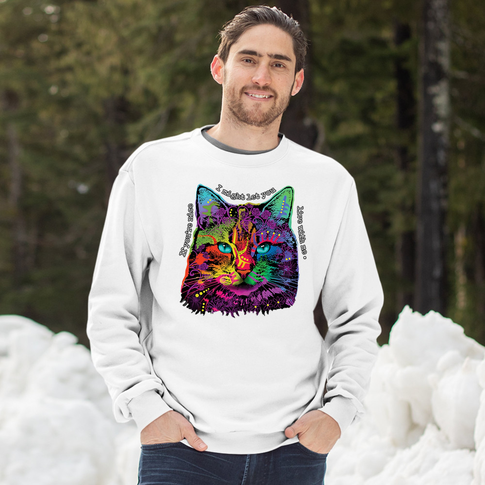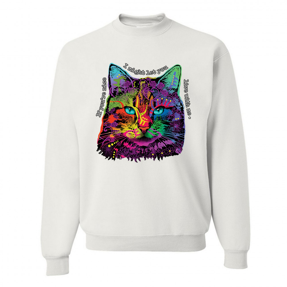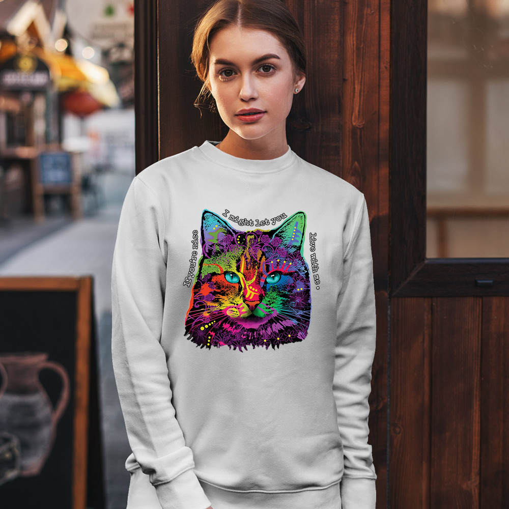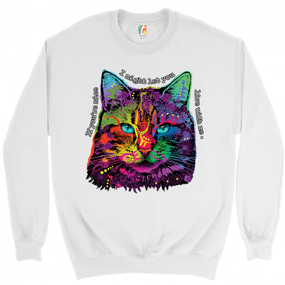 IF YOU'RE NICE I MIGHT LET YOU LIVE WITH ME sweatshirt andy maxx cat crewneck white