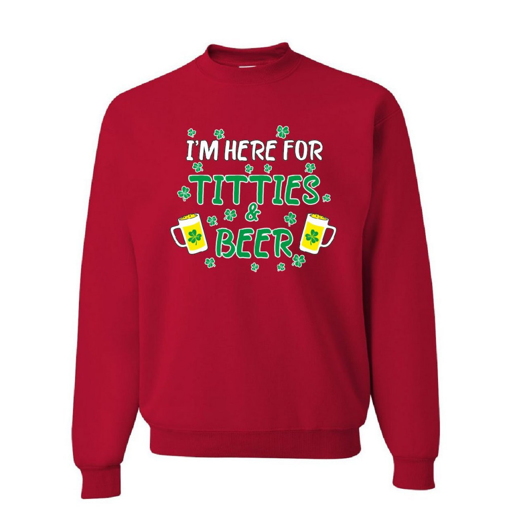 I'M HERE FOR TITTIES & BEER sweatshirt st patrick's day shenanigans sweater red