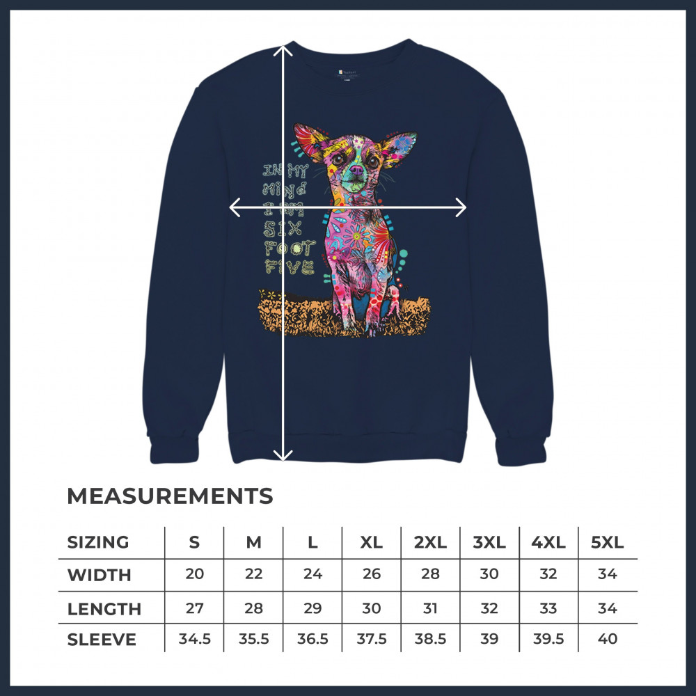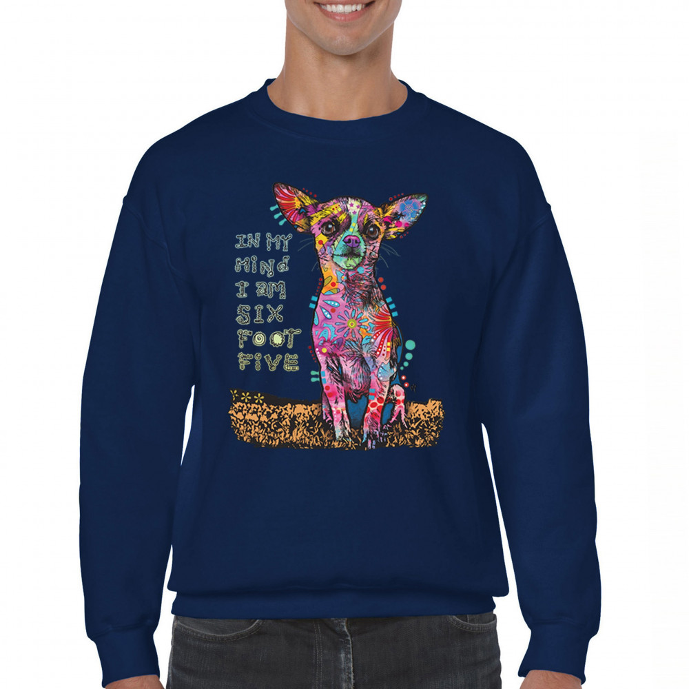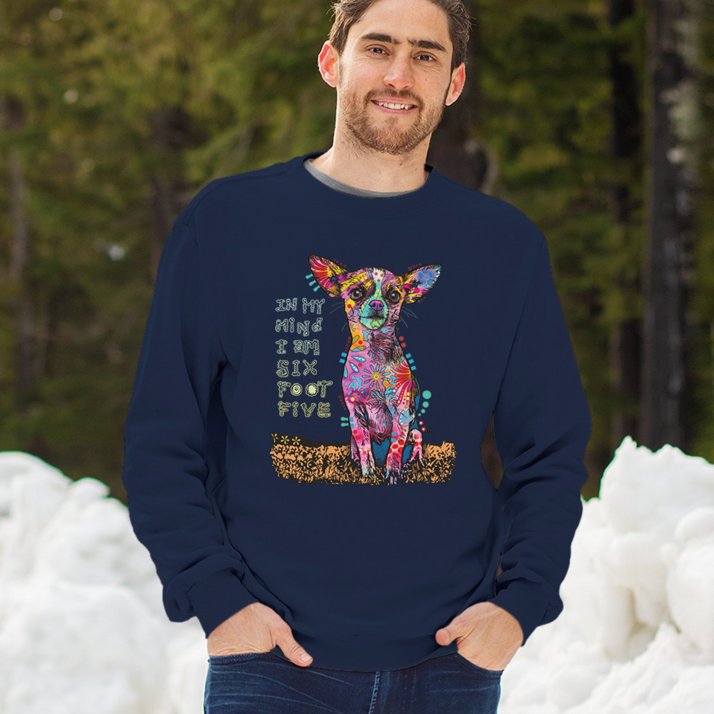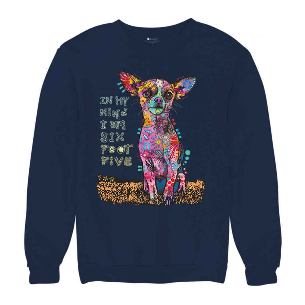 IN MY MIND I'M SIX FOOT FIVE sweatshirt dean russo funny chihuahua crewneck navy blue