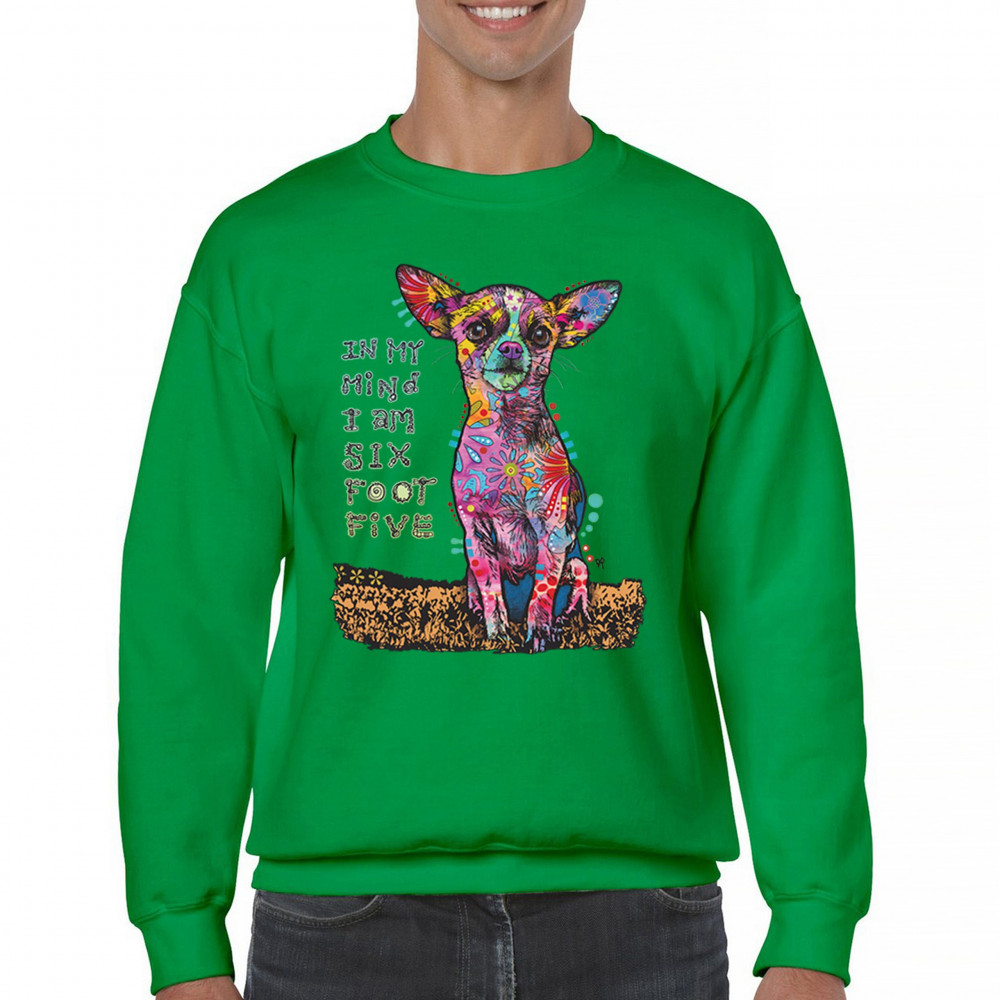 IN MY MIND I'M SIX FOOT FIVE sweatshirt dean russo funny chihuahua crewneck green