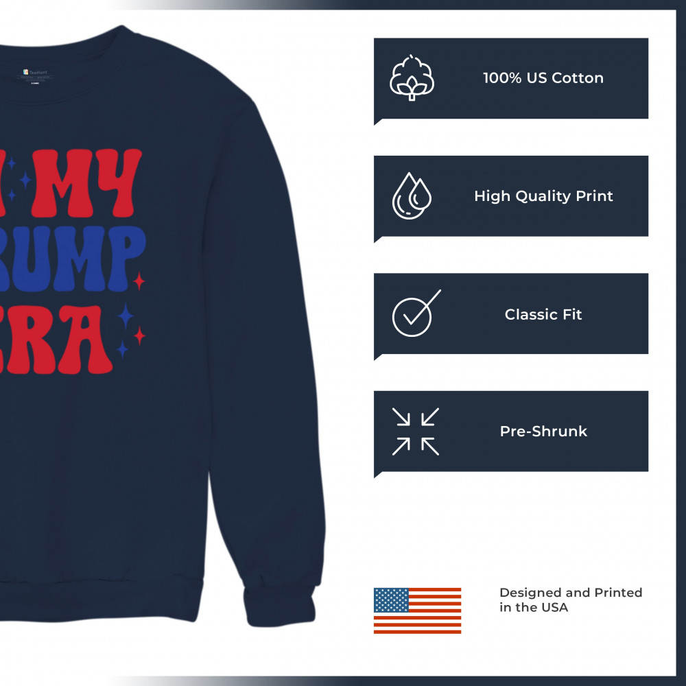 Declare your pride with this "In My Trump Era" design. Perfect for Trump supporters embracing America First, Republican values, and freedom.