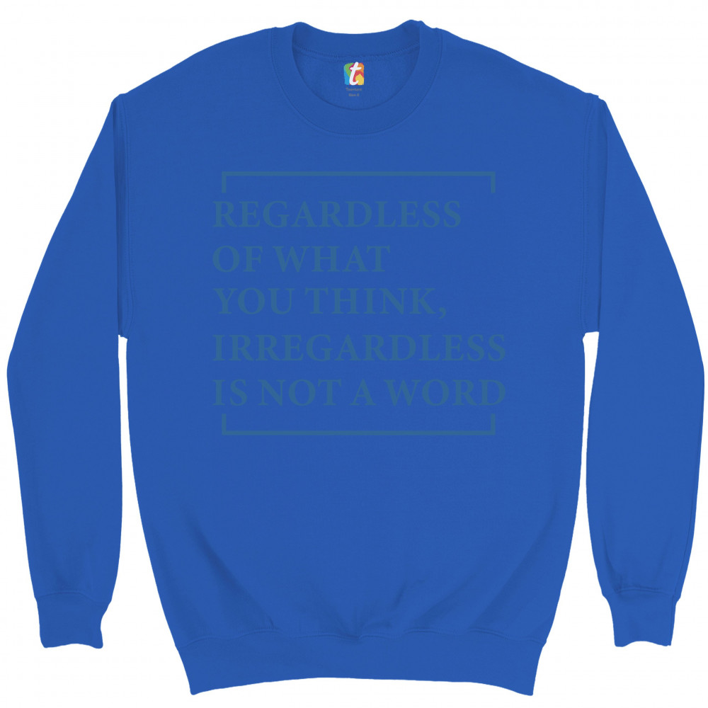 IRREGARDLESS IS NOT A WORD sweatshirt funny english grammar crewneck royal blue