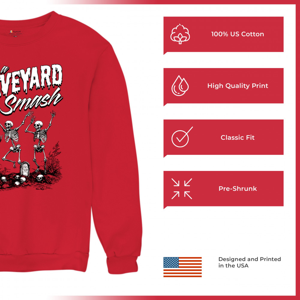 Celebrate Halloween with a fun "Graveyard Smash" design featuring dancing skeletons. Perfect for parties and haunted house events!