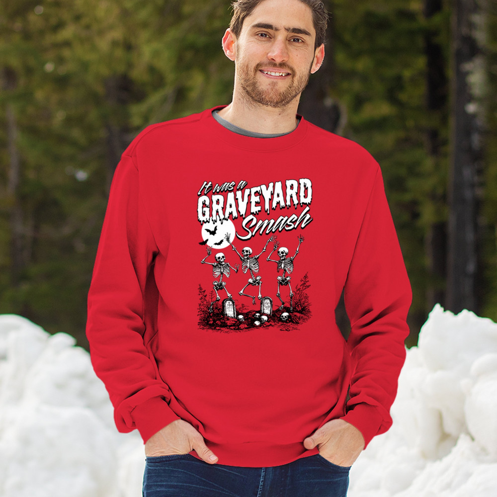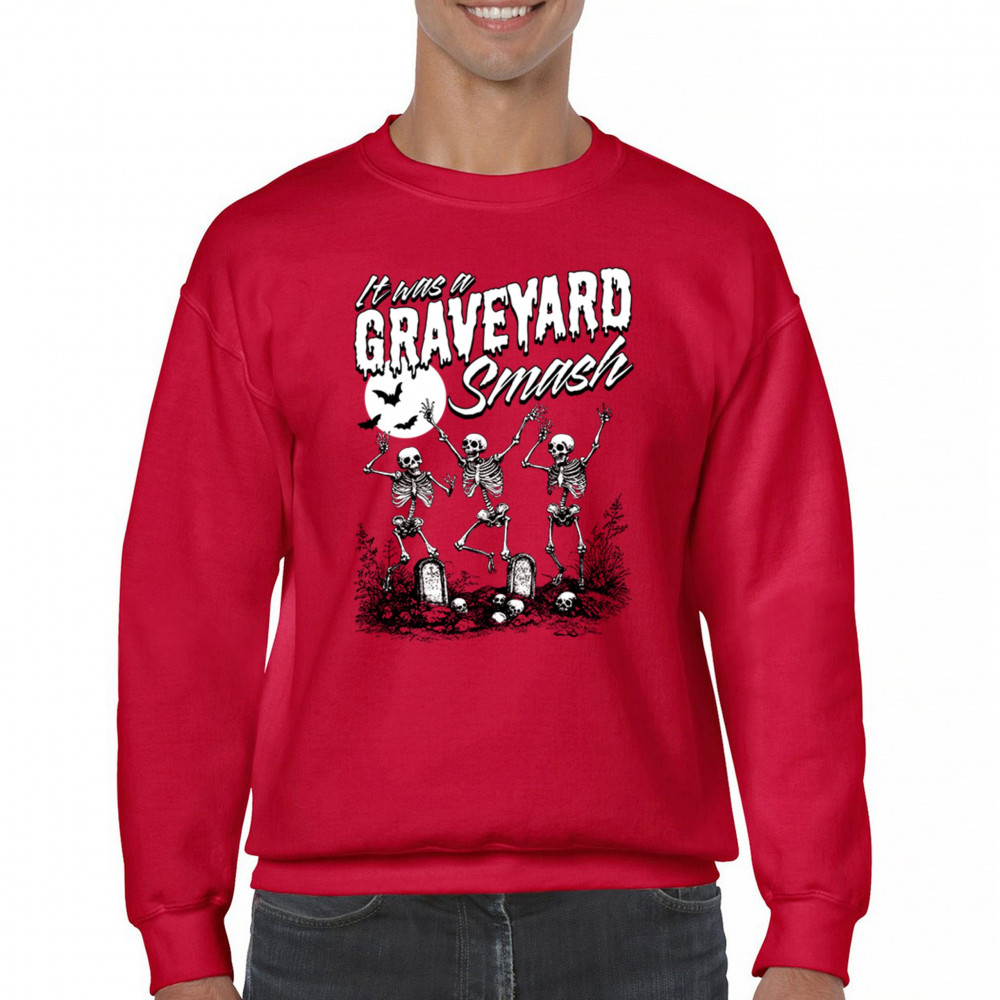Add a touch of spooky fun to your Halloween attire with this "Graveyard Smash" design, showcasing skeletons dancing under the moonlight in a graveyard. Ideal for anyone who loves Halloween, this graphic tee is perfect for parties, haunted houses, or casual trick-or-treating. Made from high-quality materials, it offers both comfort and style, ensuring you look great while embracing the festive spirit. Available in multiple sizes, this shirt is a must-have for your Halloween collection.