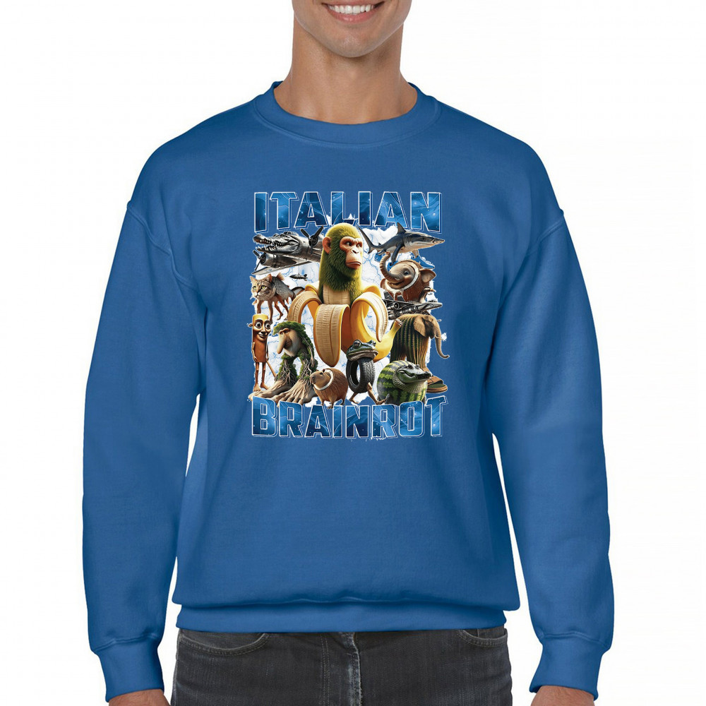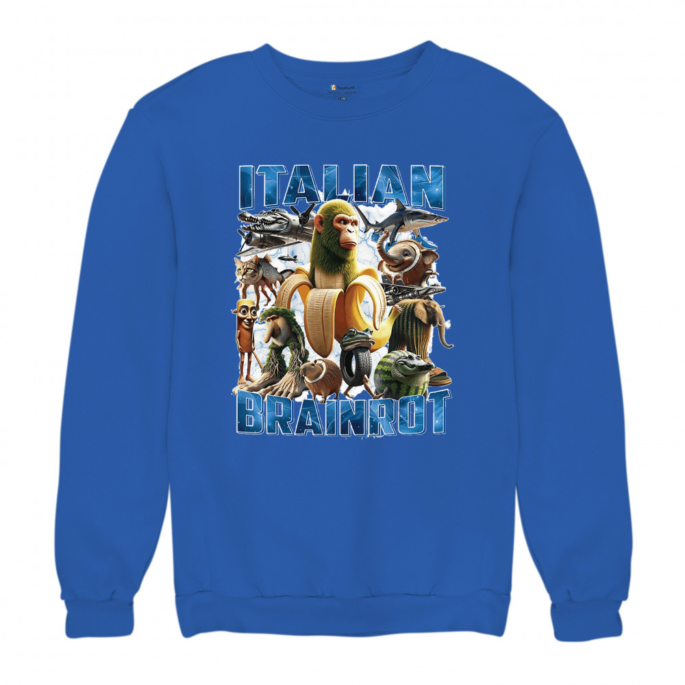 This design captures the full force of Italian brainrot—bananas, sharks, monkeys, and meme beasts collide in an unfiltered internet-core explosion. Perfect for fans of cursed humor, Gen Z trends, absurd fashion, TikTok memes, ironic style, surreal pop art, chaotic culture, digital nonsense, Gen Alpha brainrot, and hyper-online energy.