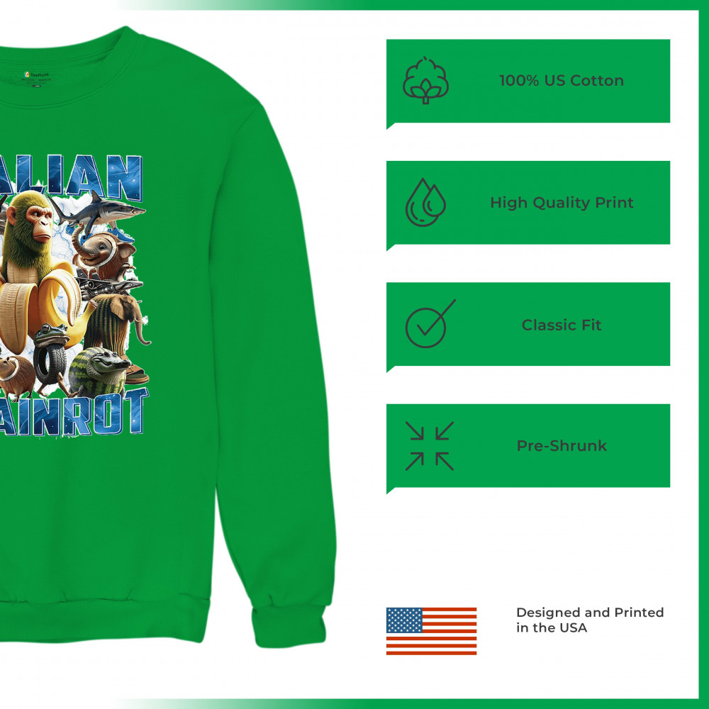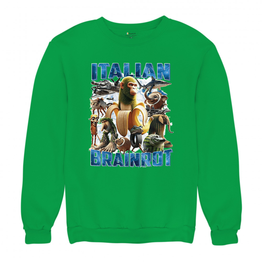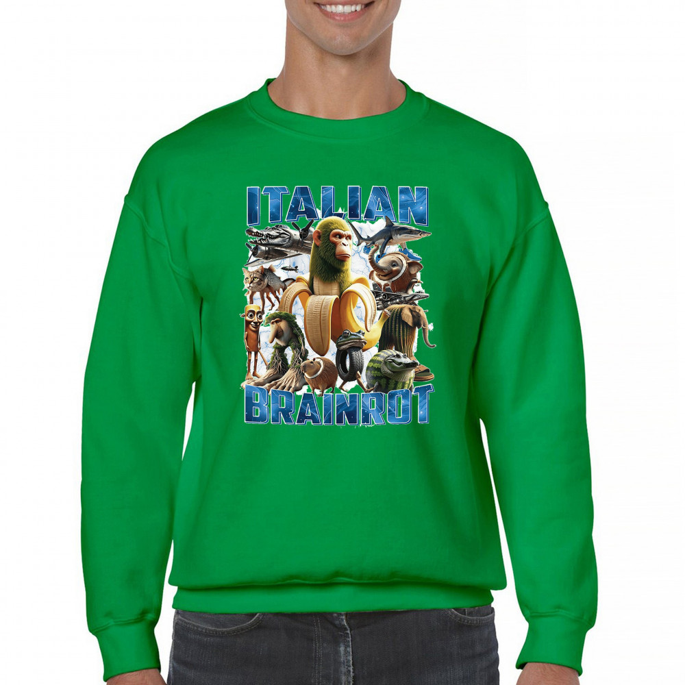 ITALIAN BRAINROT crewneck sweatshirt funny absurd gen z internet meme trend green