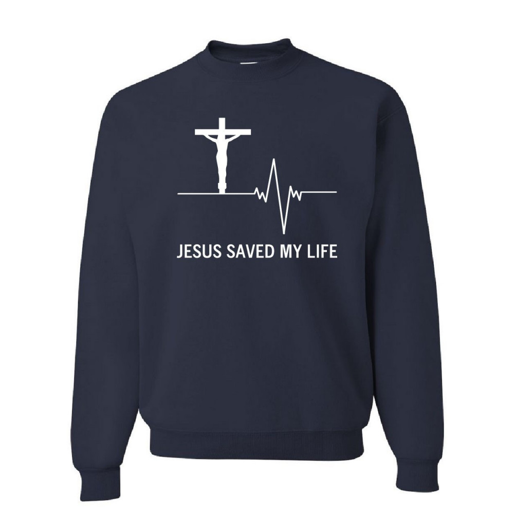 JESUS SAVED MY LIFE sweatshirt christian religion faith god navy blue