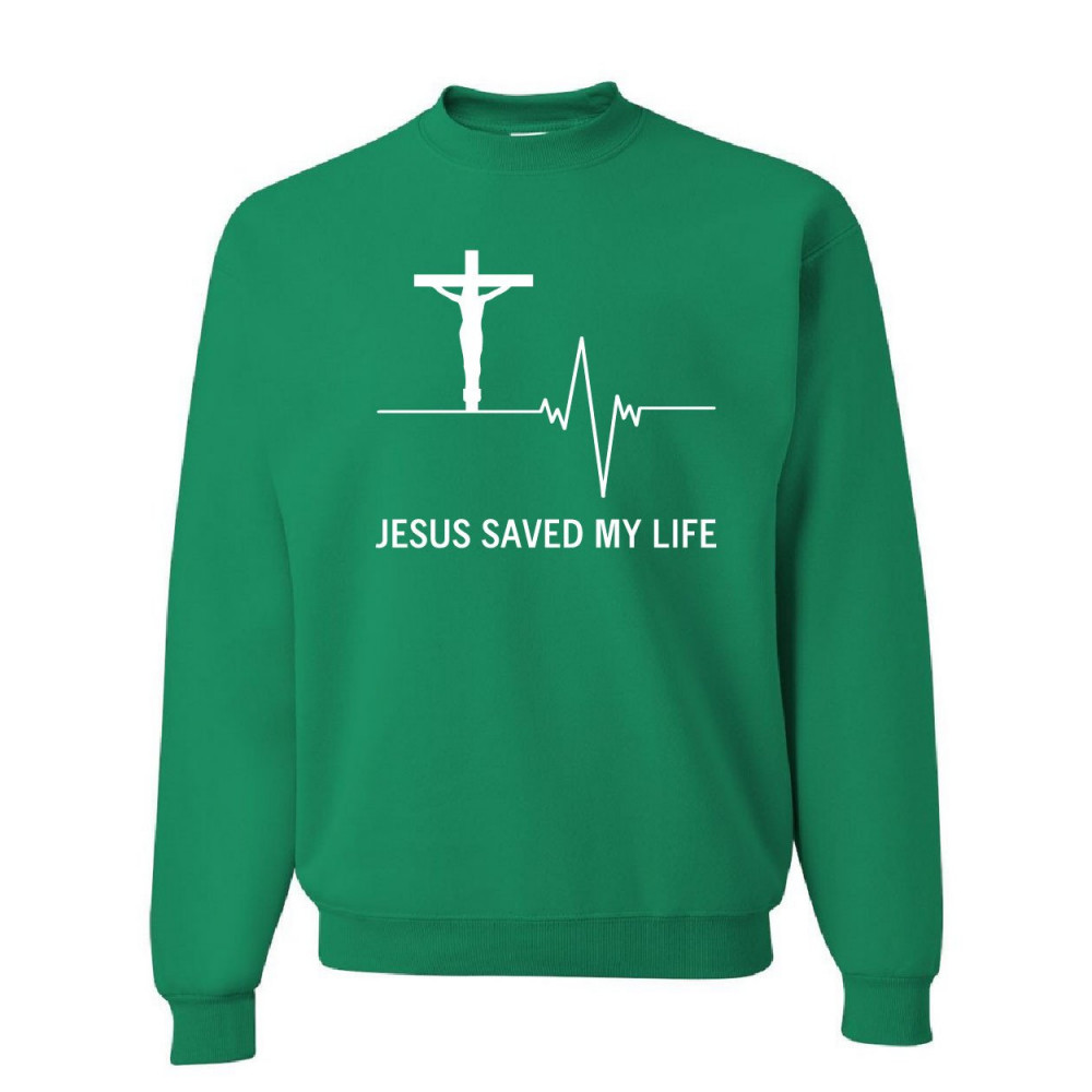 JESUS SAVED MY LIFE sweatshirt christian religion faith god green