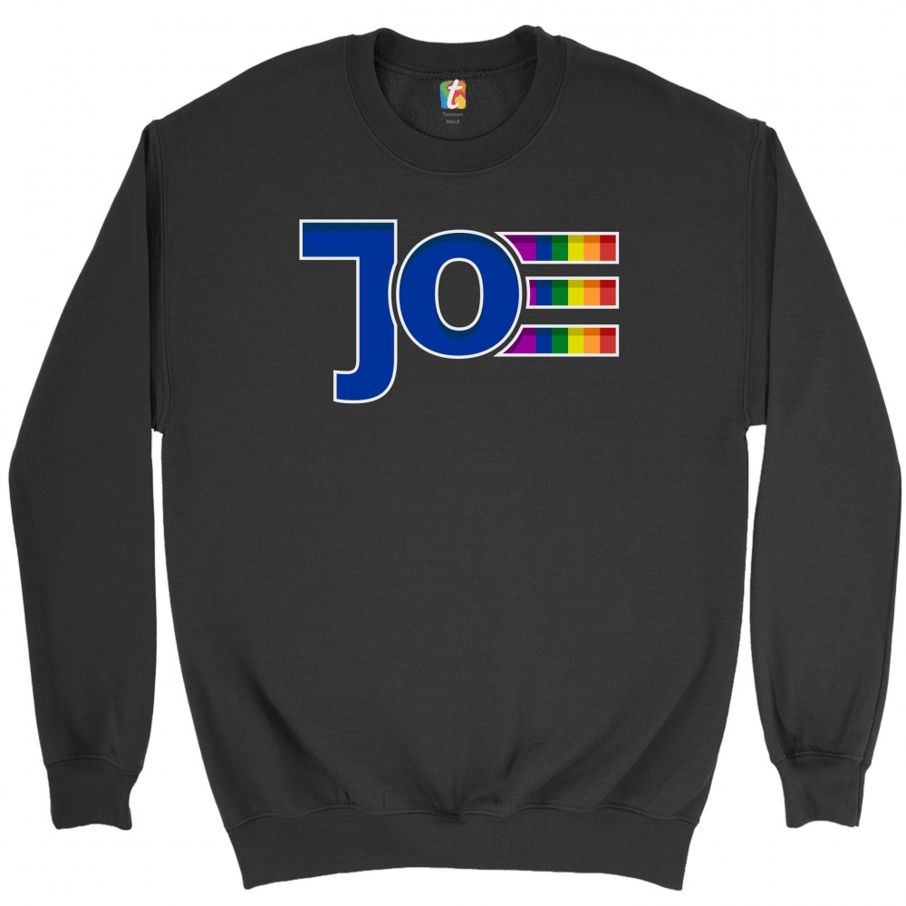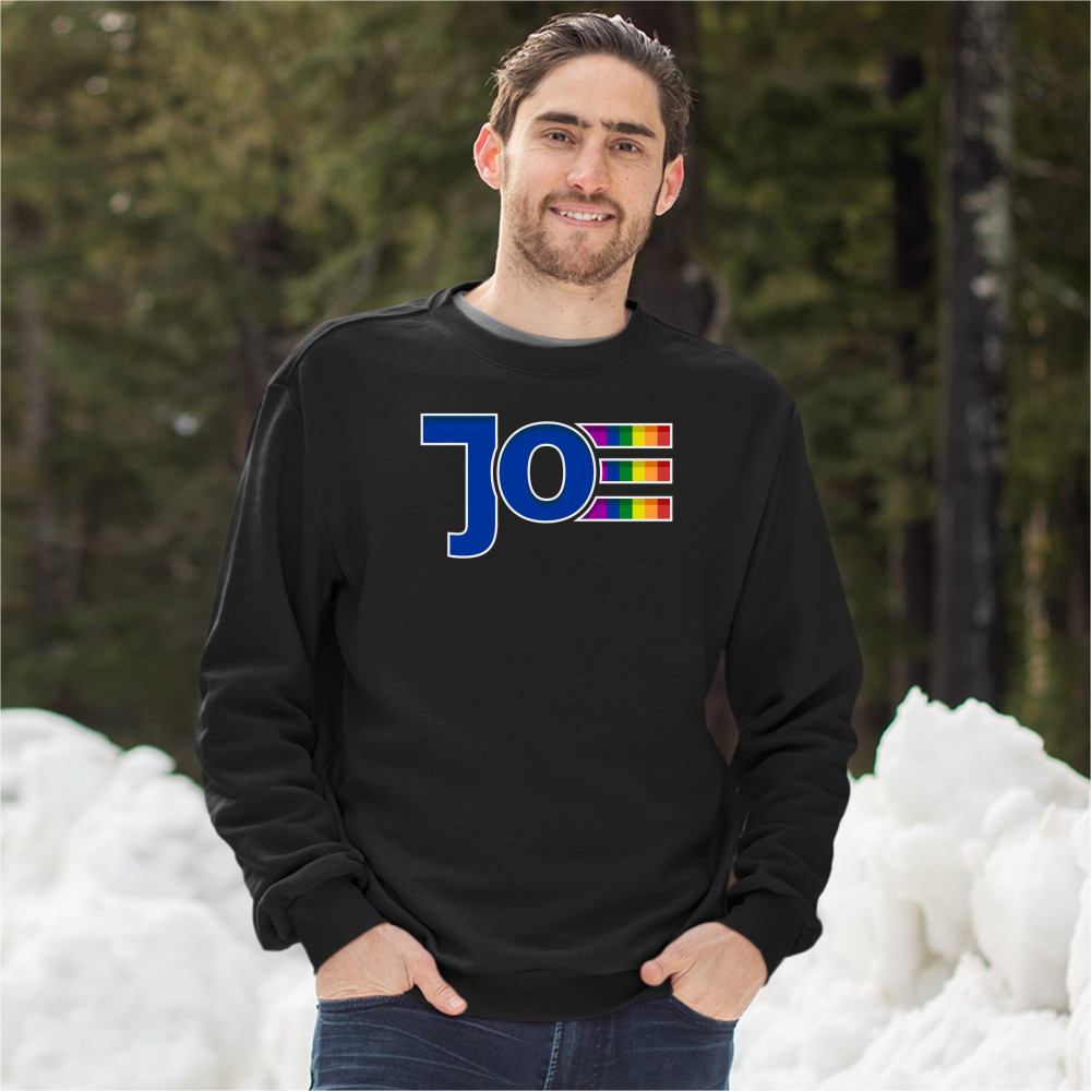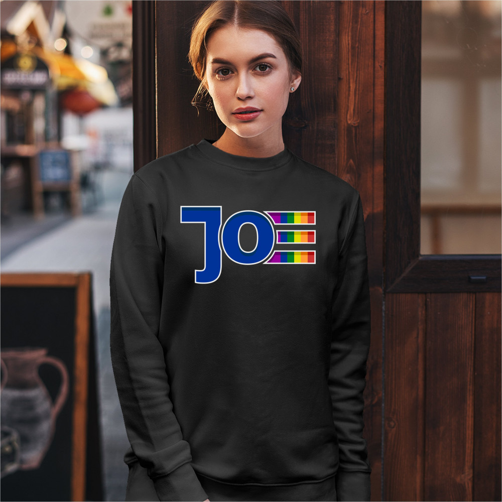 A political print featuring the name of the democratic presidential candidate "Joe". The letter "e" is painted with the colors of the lgbt rainbow. It is a great choice to wear to show your support for the democratic presidential nominee and his vice pres
