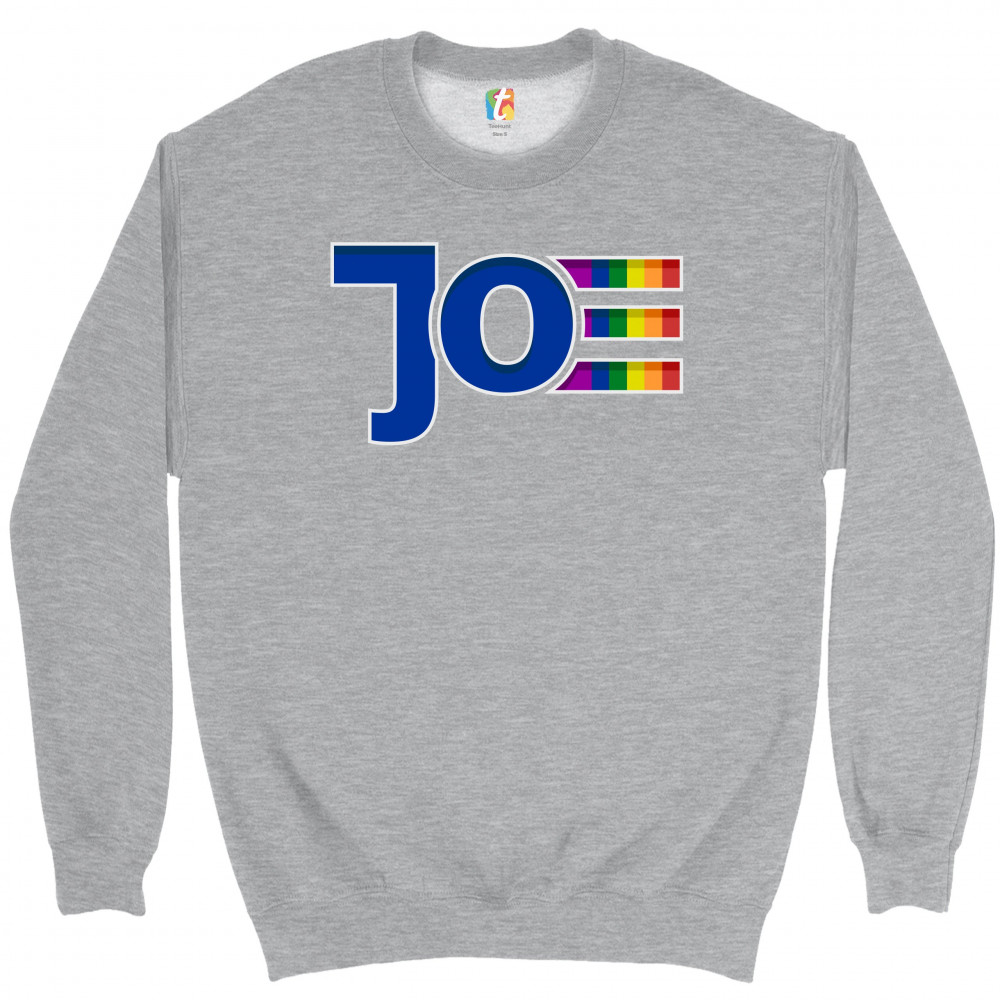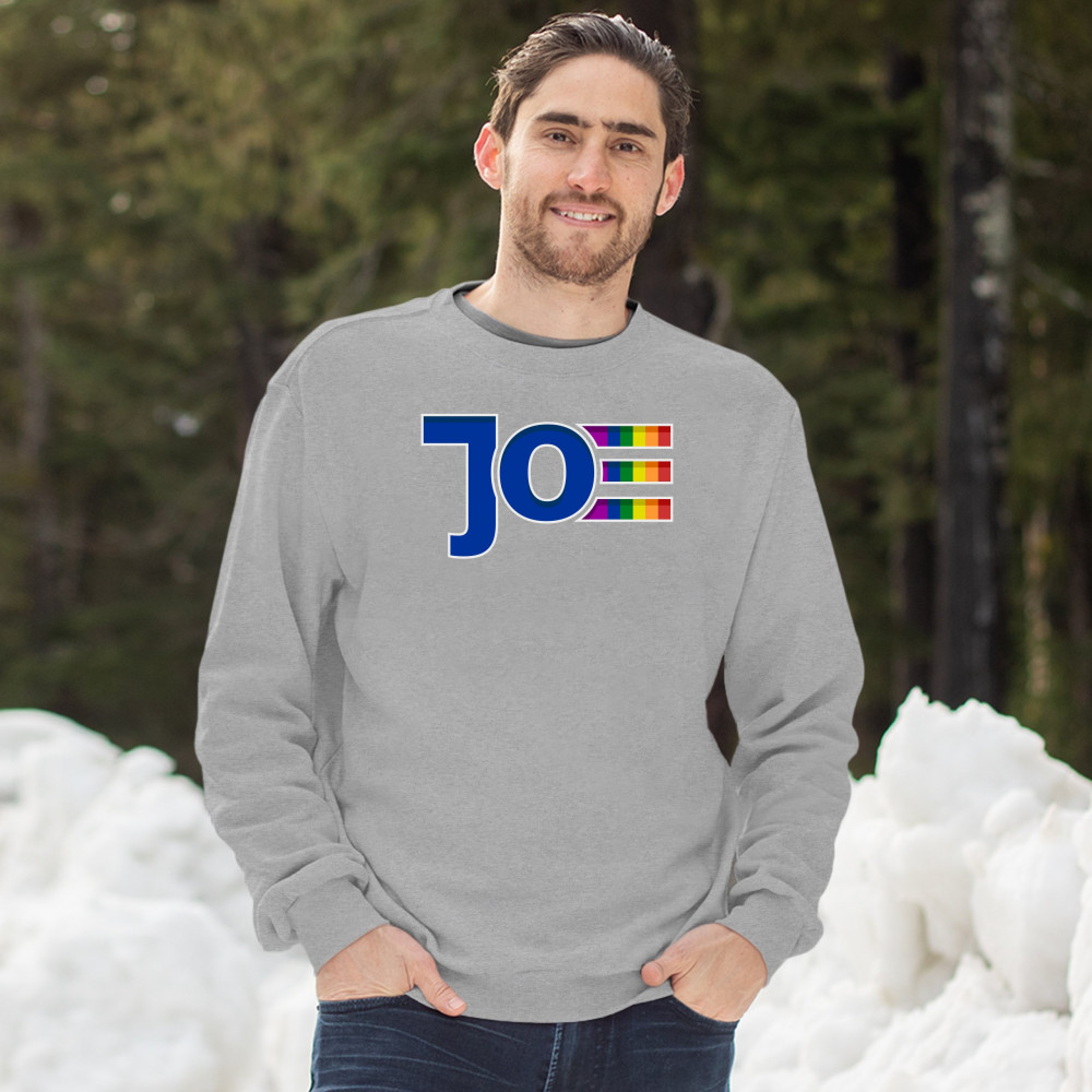 A political print featuring the name of the democratic presidential candidate "Joe". The letter "e" is painted with the colors of the lgbt rainbow. It is a great choice to wear to show your support for the democratic presidential nominee and his vice pres