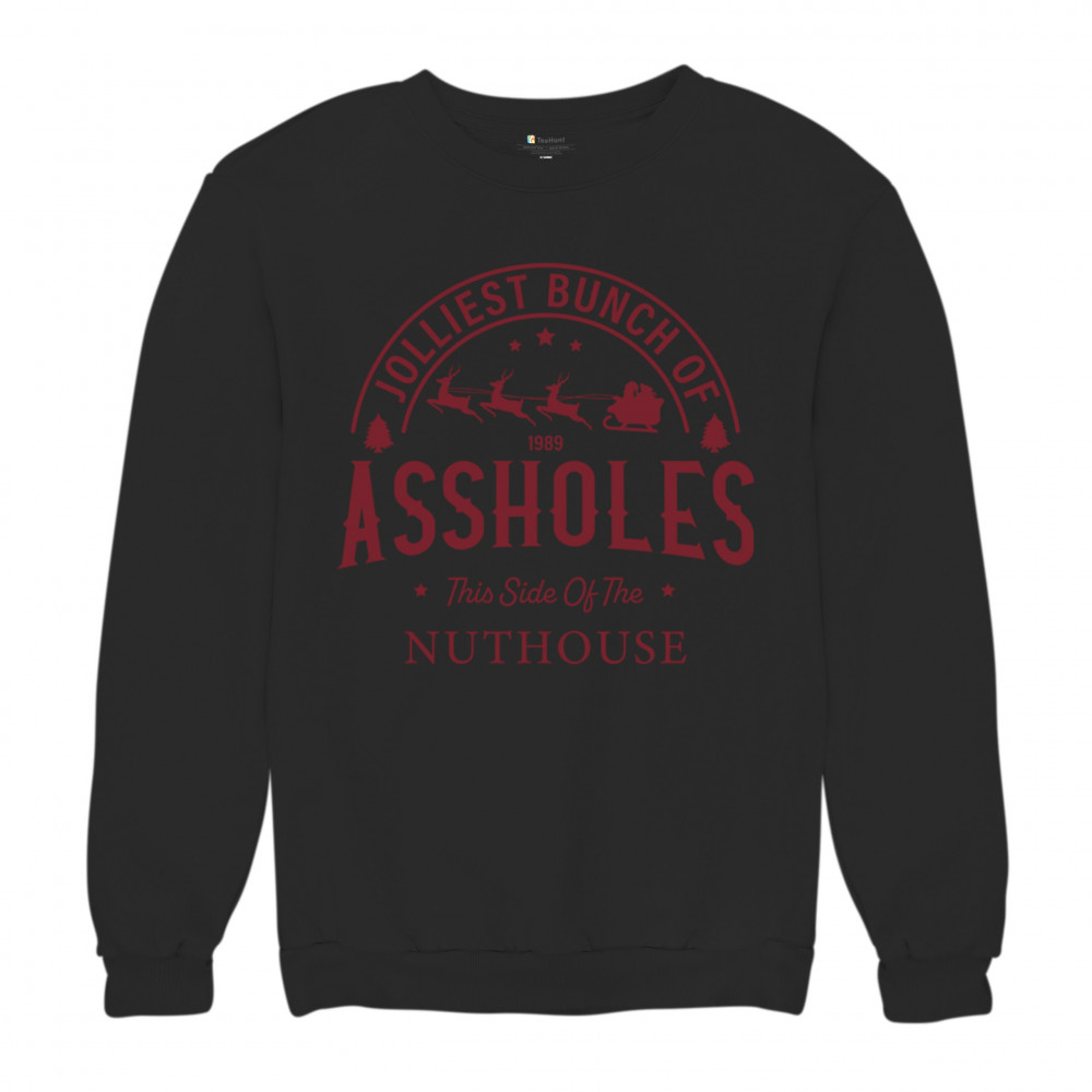 JOLLIEST BUNCH OF AS*HOL*S crewneck sweatshirt funny christmas santa claus black