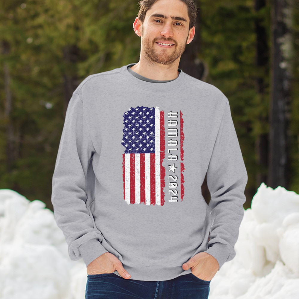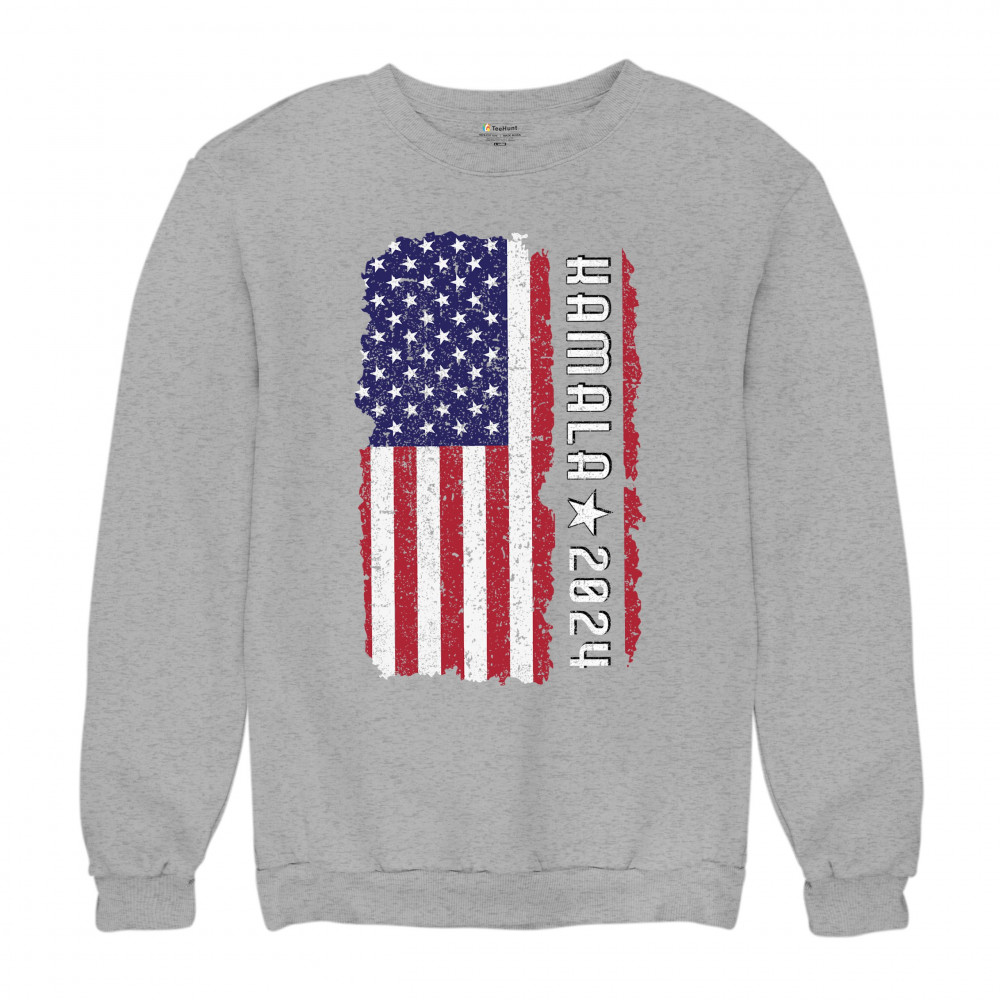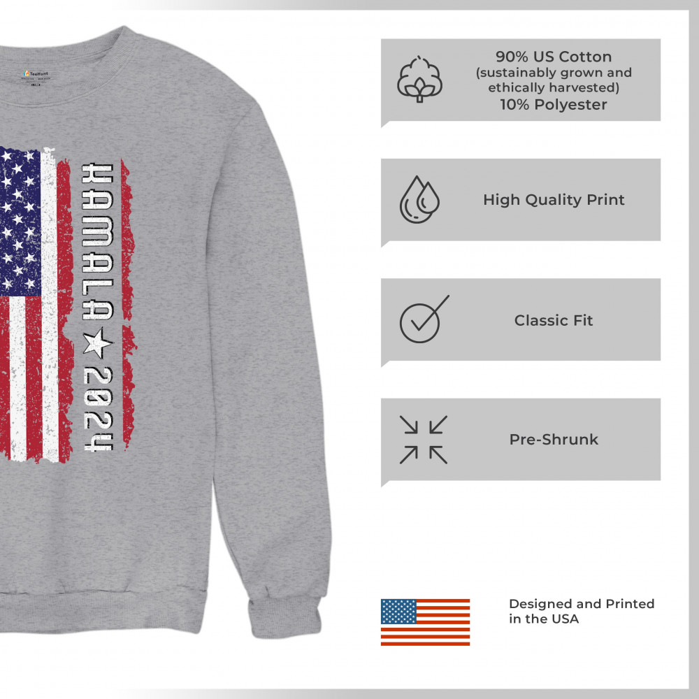 Support Kamala Harris 2024 with a bold design featuring a distressed American flag. Perfect for rallies and political events. Celebrate diversity!