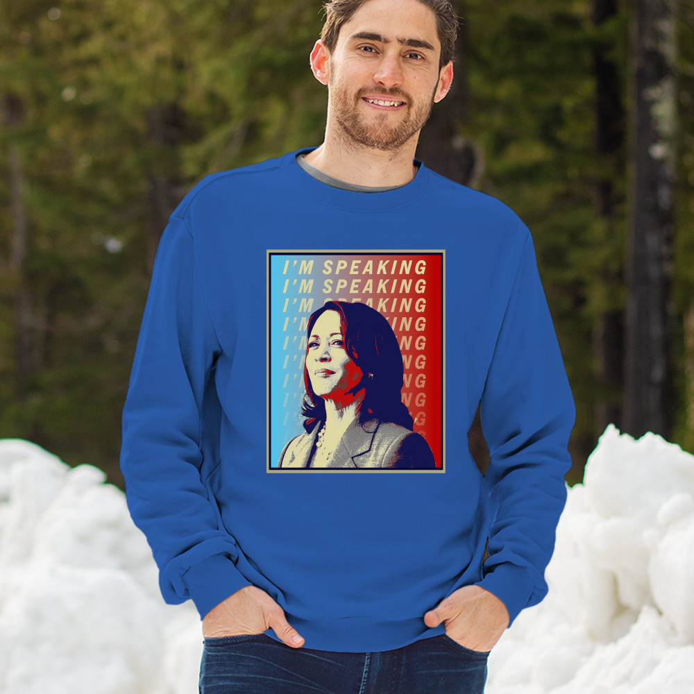 Support Kamala Harris with our "I'M SPEAKING" design, perfect for Democrats, liberals, and anti-Trump supporters. Show your pride and unity.