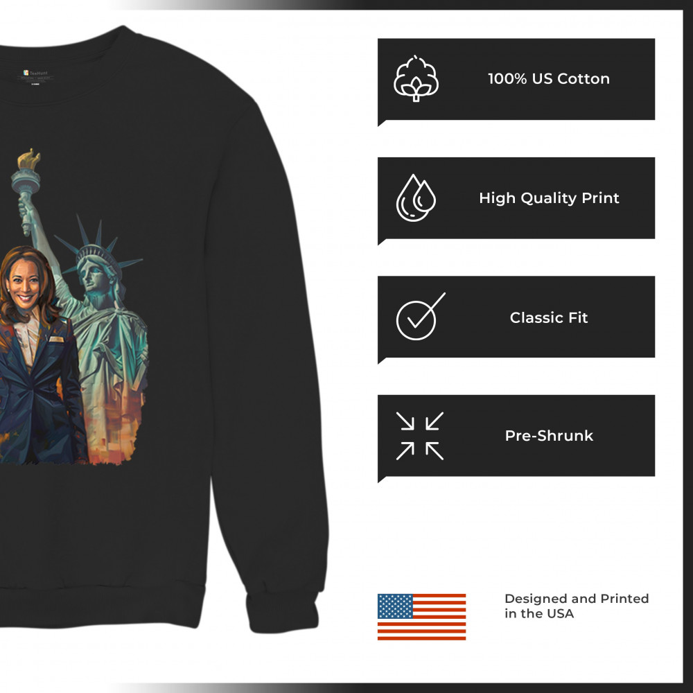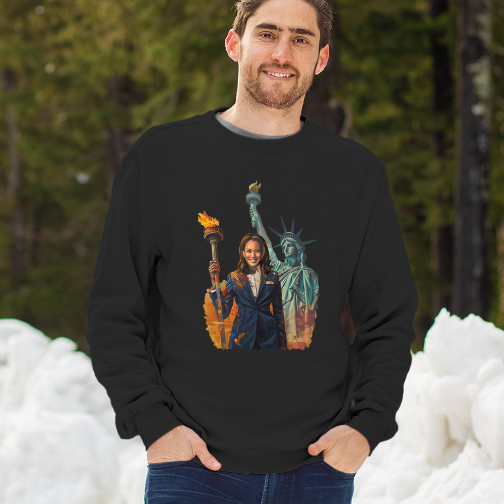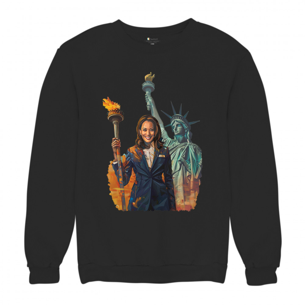Show your support for Harris-Walz 2024 with this bold design featuring Kamala Harris and the Statue of Liberty. Stand for justice, equality, and a brighter future.
