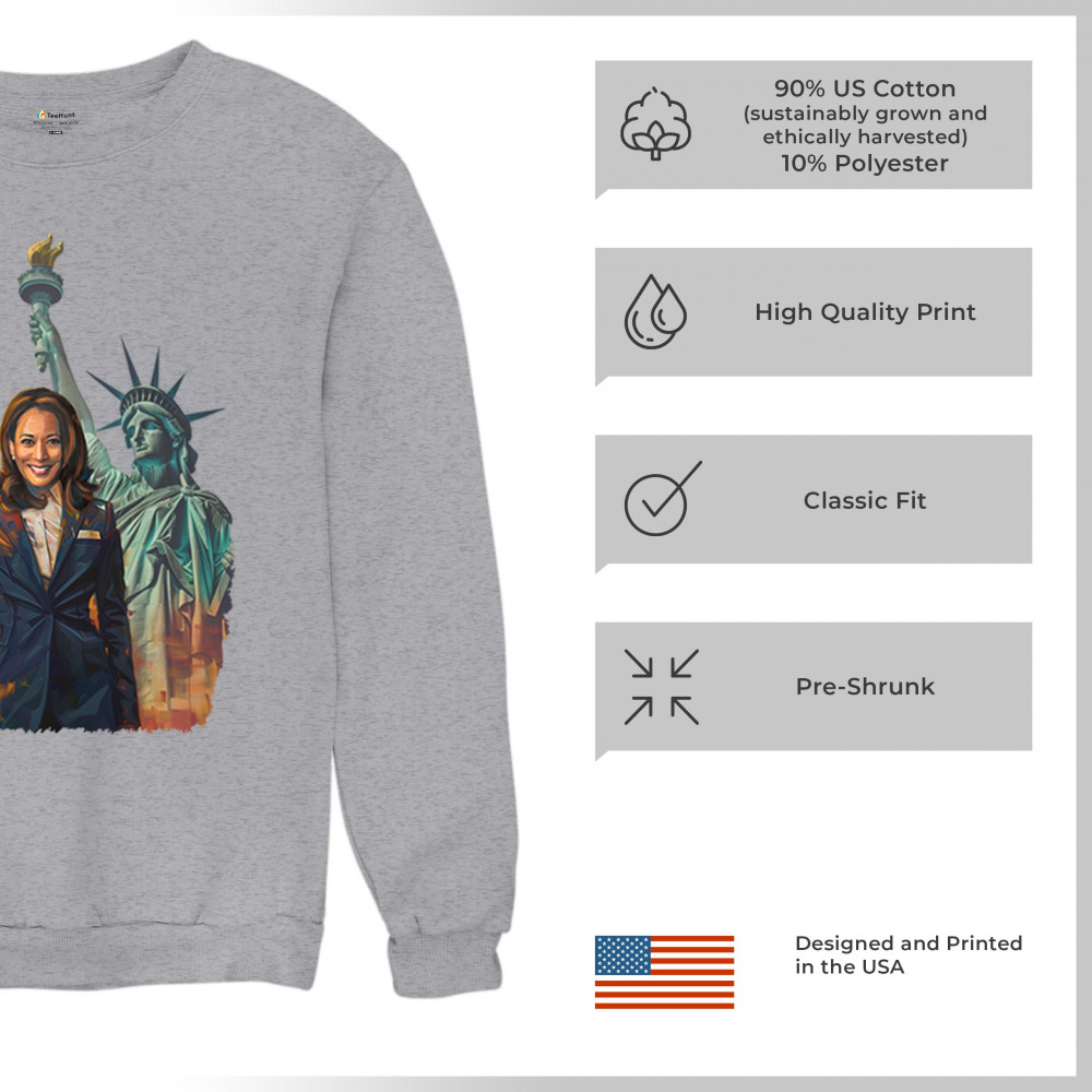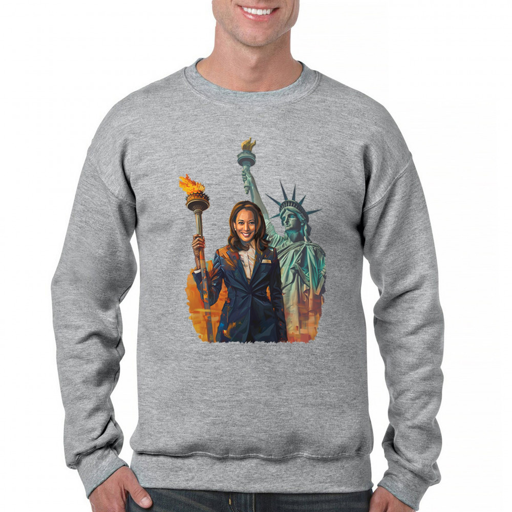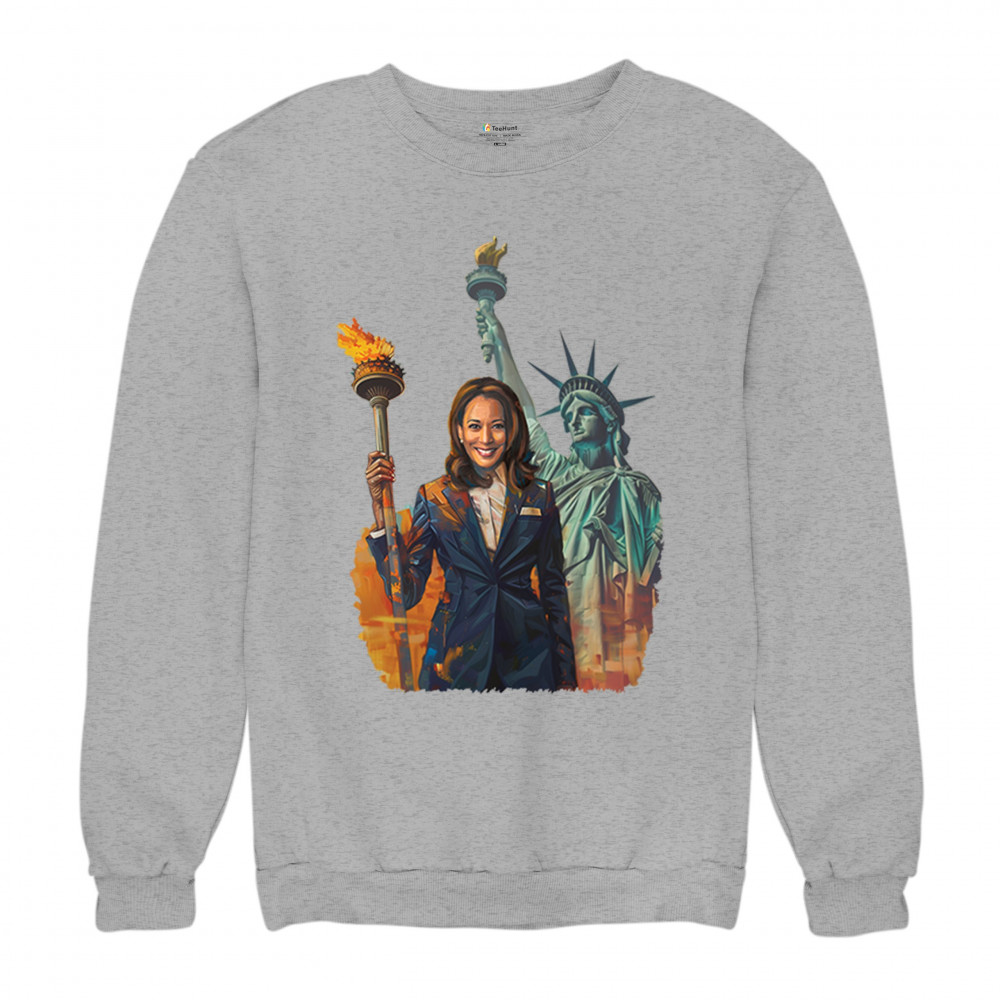 Show your support for Harris-Walz 2024 with this bold design featuring Kamala Harris and the Statue of Liberty. Stand for justice, equality, and a brighter future.