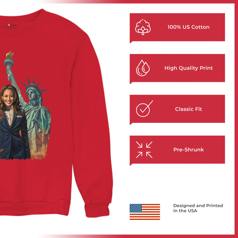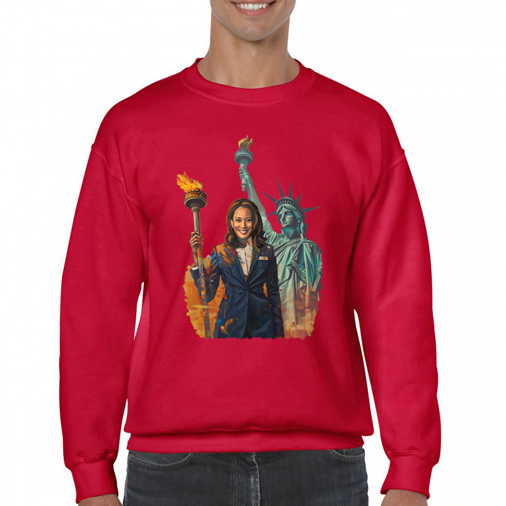 Show your support for Harris-Walz 2024 with this bold design featuring Kamala Harris and the Statue of Liberty. Stand for justice, equality, and a brighter future.