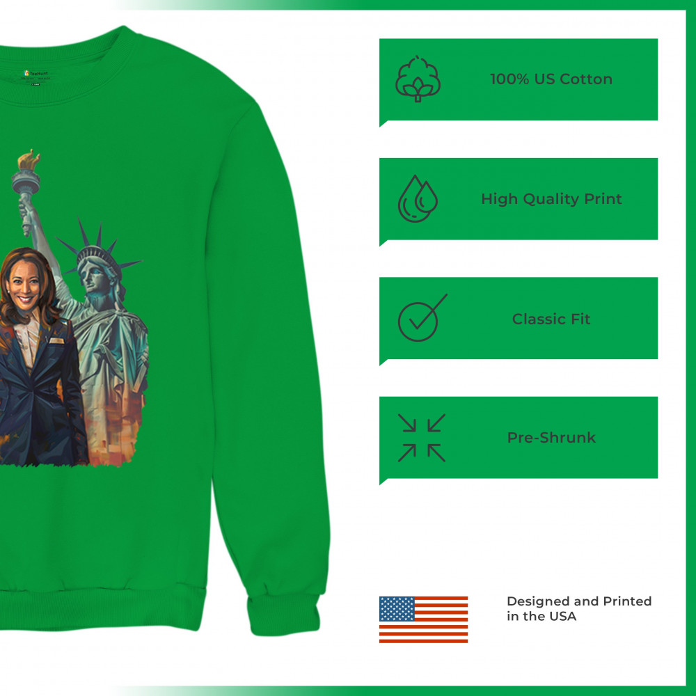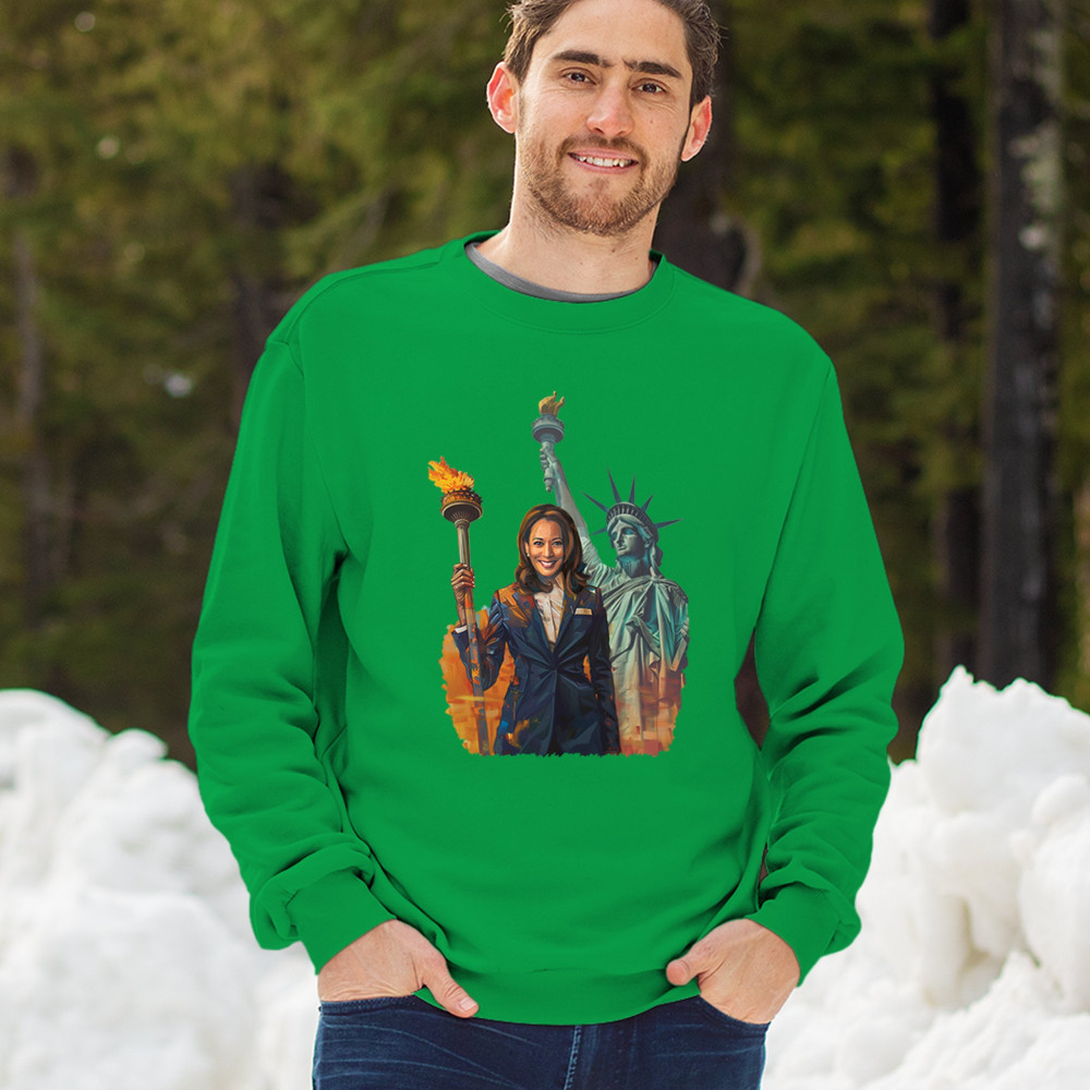 Show your support for Harris-Walz 2024 with this bold design featuring Kamala Harris and the Statue of Liberty. Stand for justice, equality, and a brighter future.
