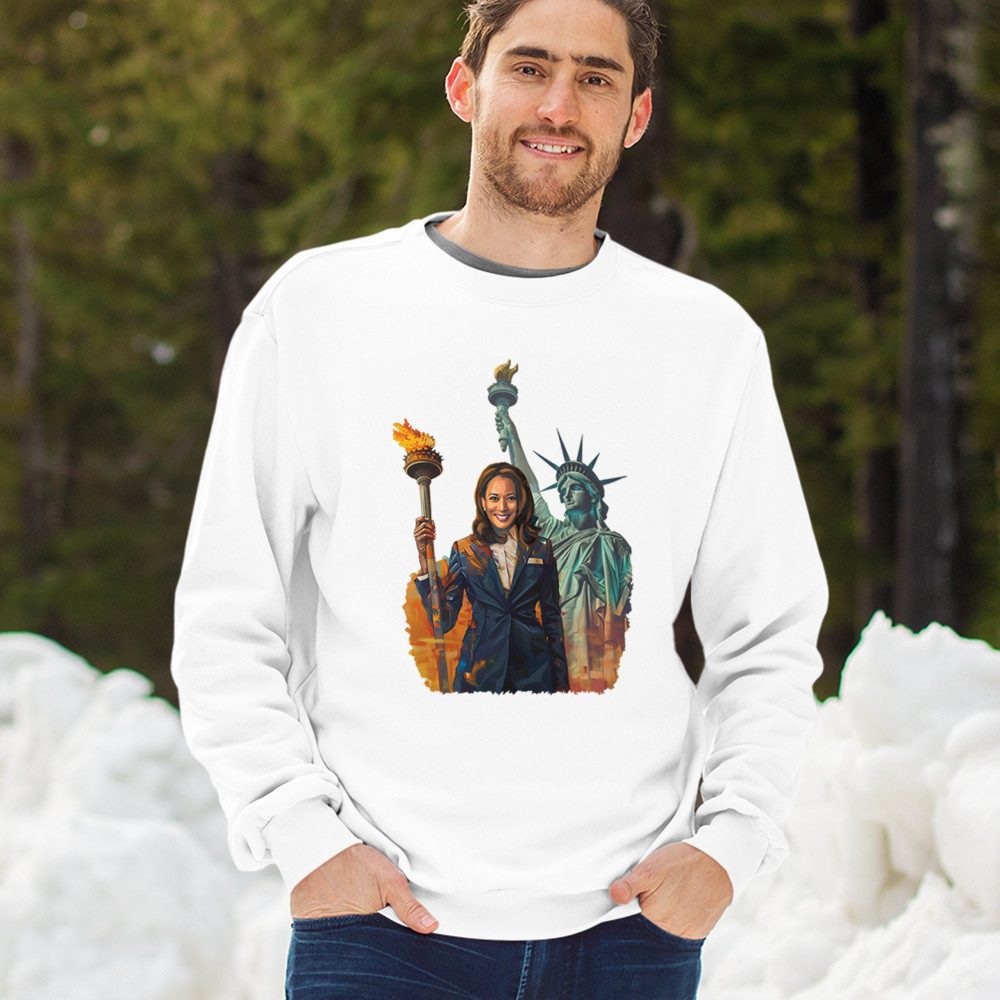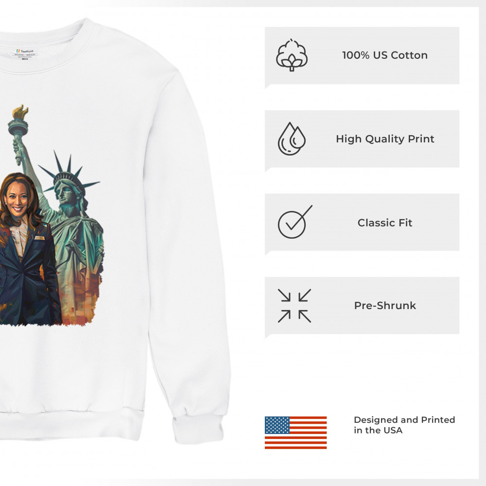 Show your support for Harris-Walz 2024 with this bold design featuring Kamala Harris and the Statue of Liberty. Stand for justice, equality, and a brighter future.