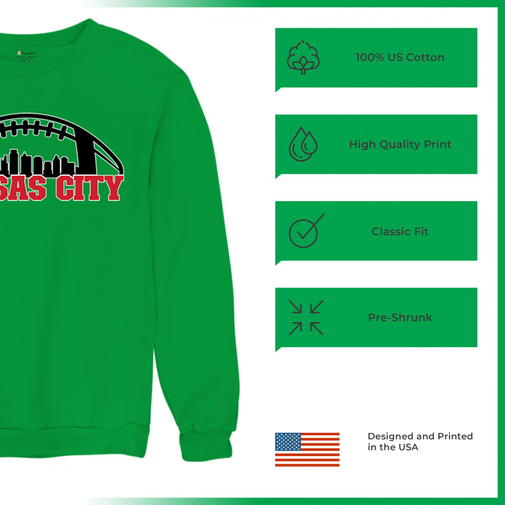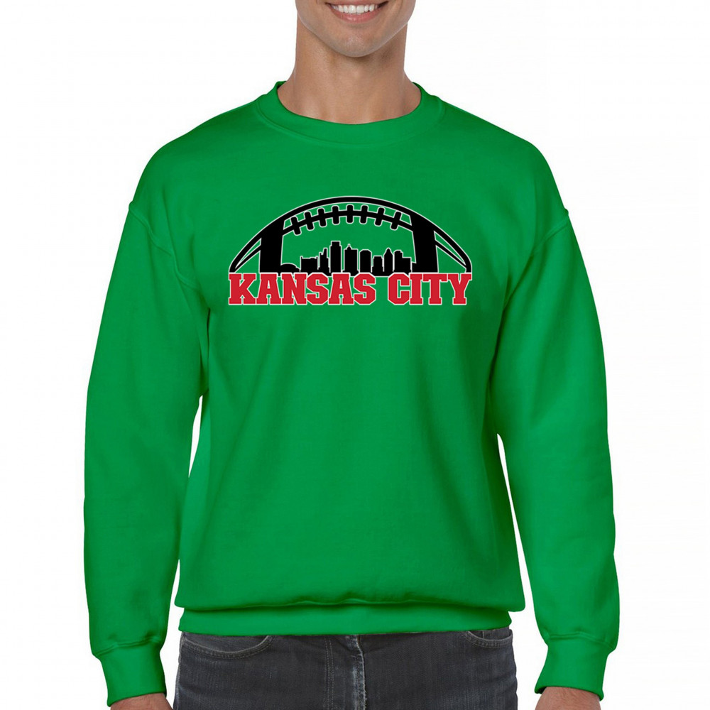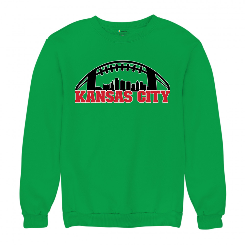 Celebrate Kansas City with a bold football design featuring the city skyline. Perfect for game days, tailgates, or proud sports fans.