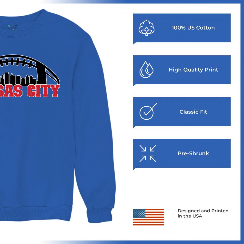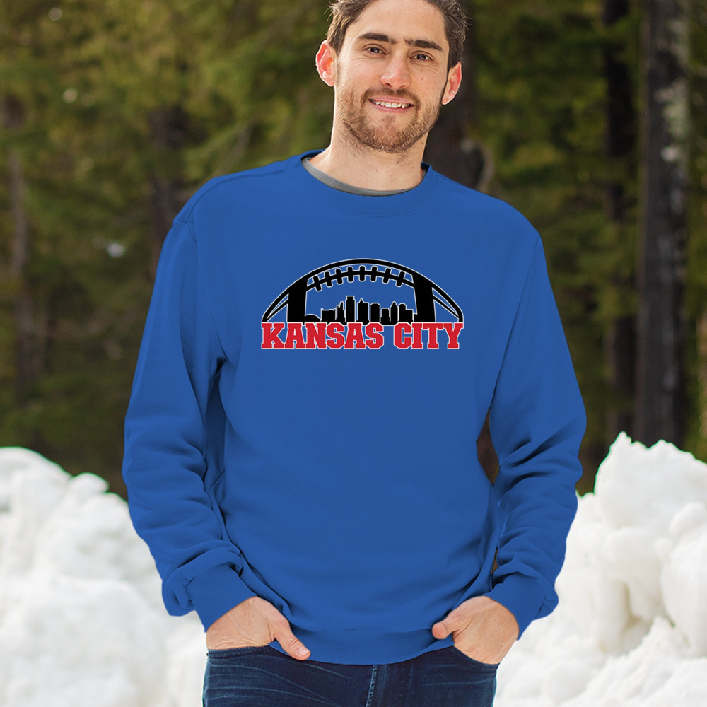 Celebrate Kansas City with a bold football design featuring the city skyline. Perfect for game days, tailgates, or proud sports fans.