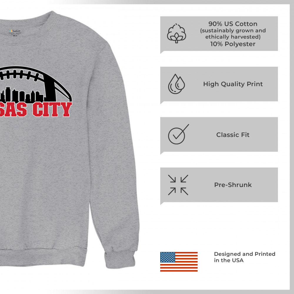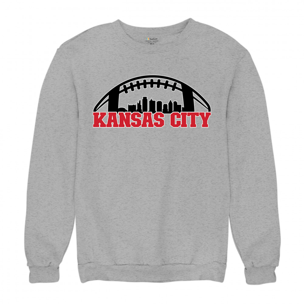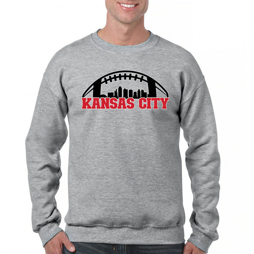 KANSAS CITY FOOTBALL sweatshirt k.c. skyline champions game day fan crewneck gray