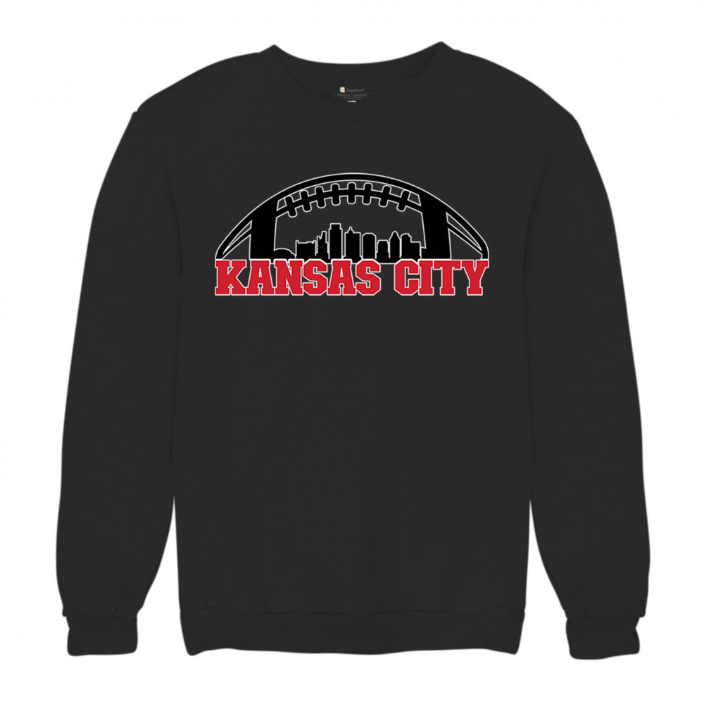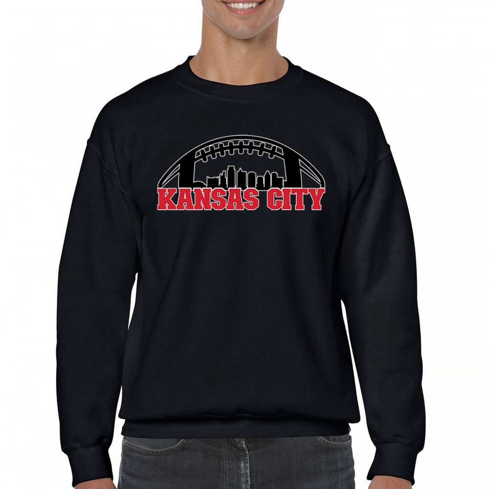 KANSAS CITY FOOTBALL sweatshirt k.c. skyline champions game day fan crewneck black