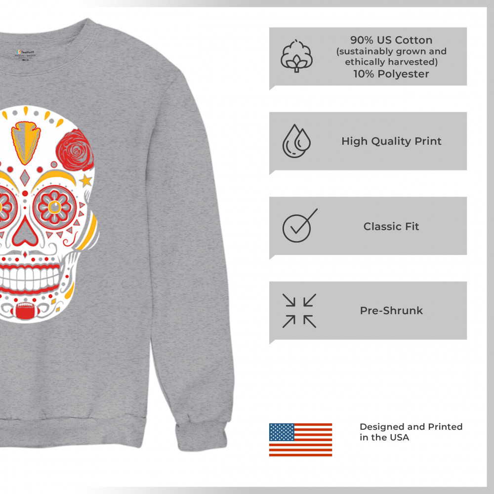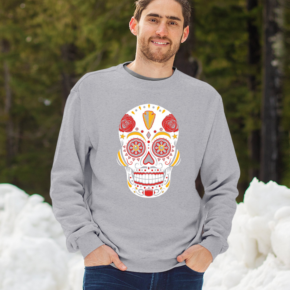 Celebrate Kansas City football with this Sugar Skull design inspired by Dia de los Muertos. Featuring Heart of America pride, red & gold tradition, and City of Fountains identity, it’s made for playoff energy, tailgate culture, and fantasy league rivalries. A bold calavera for KC fans.