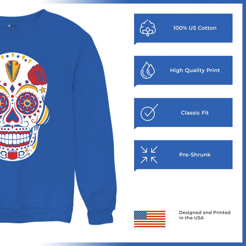 Celebrate Kansas City football with this Sugar Skull design inspired by Dia de los Muertos. Featuring Heart of America pride, red & gold tradition, and City of Fountains identity, it’s made for playoff energy, tailgate culture, and fantasy league rivalries. A bold calavera for KC fans.