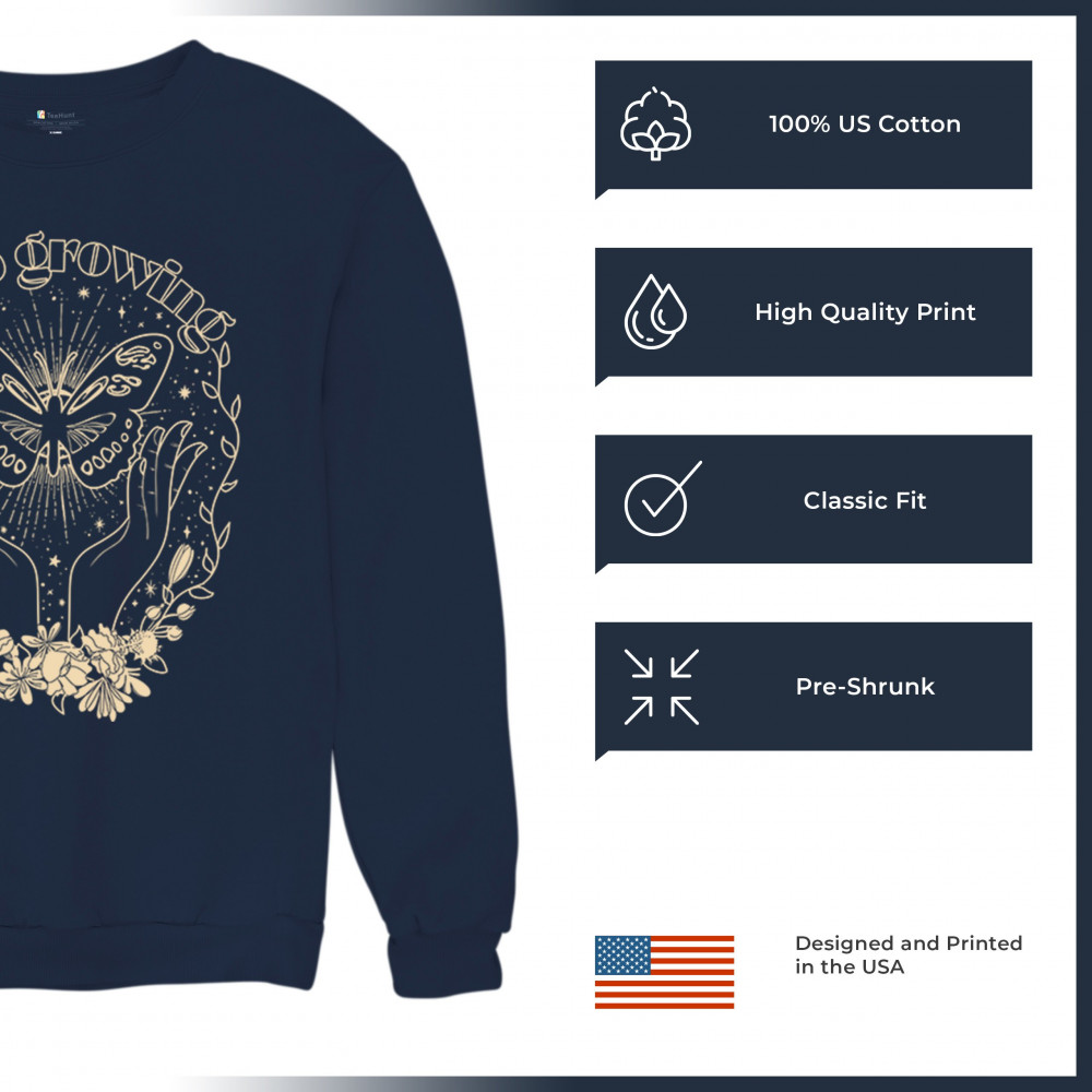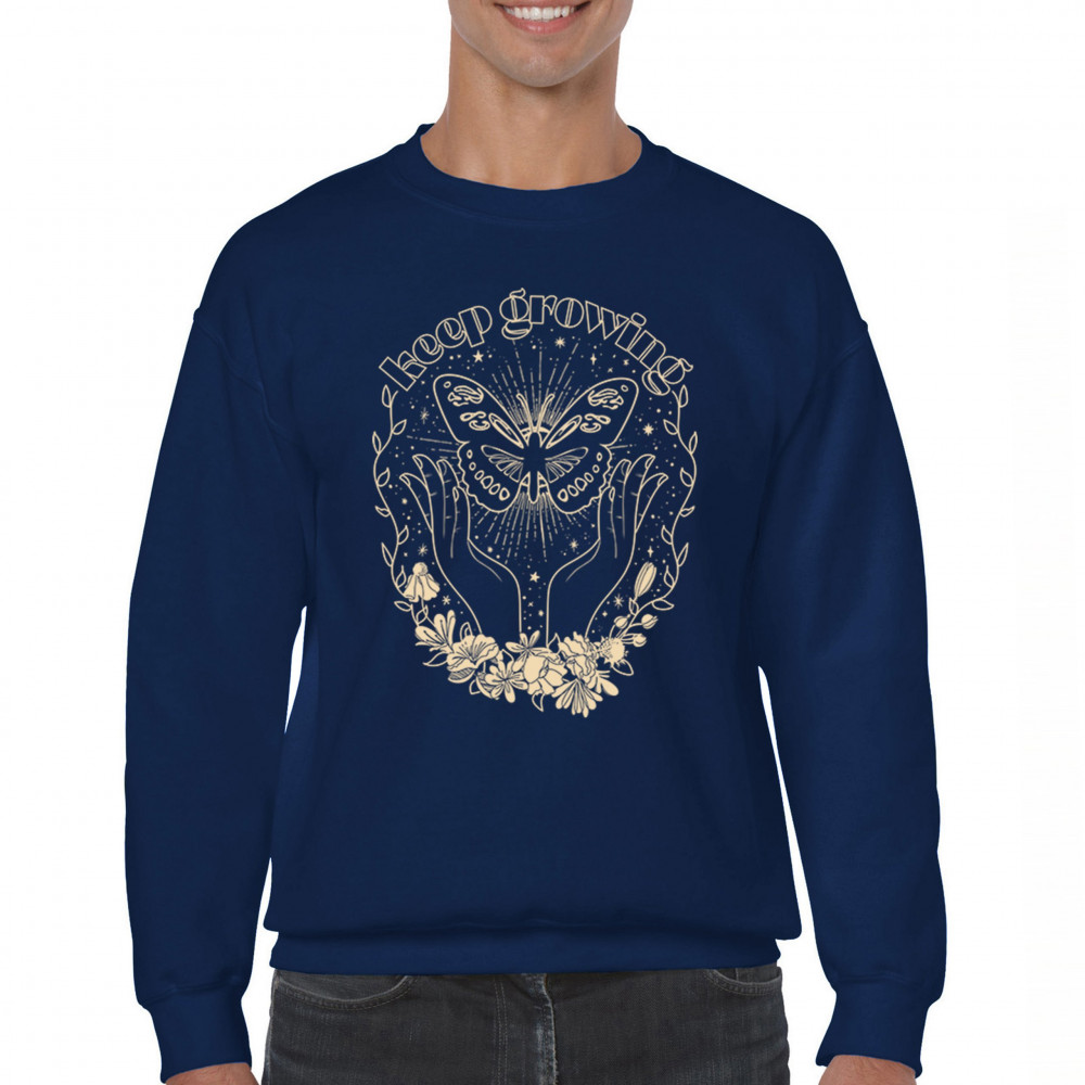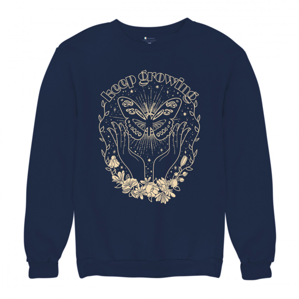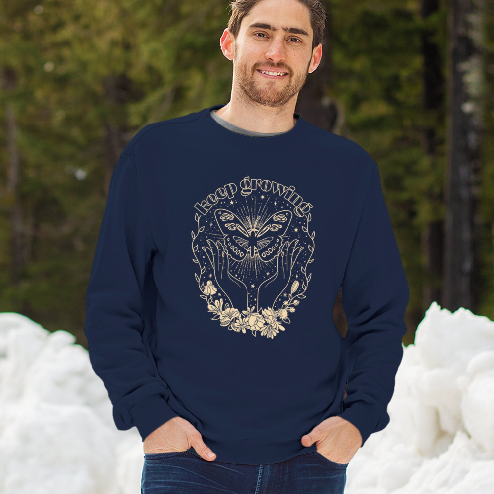 Step into your transformation with this Keep Growing design, featuring a celestial butterfly held between graceful hands and blooming flowers. A visual symbol of healing, renewal, and inner strength—perfect for journaling, meditation, yoga, or nature-inspired living. Ideal for dreamers, wellness seekers, and spiritual adventurers.