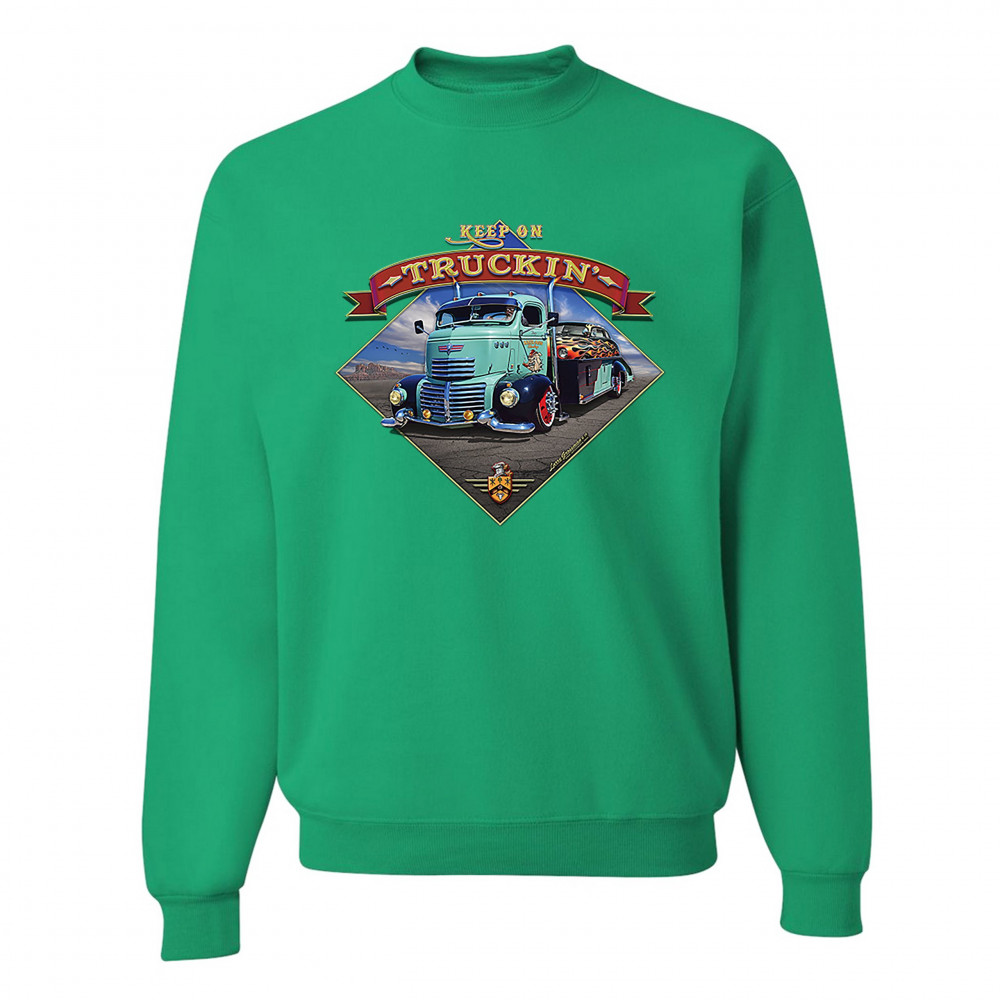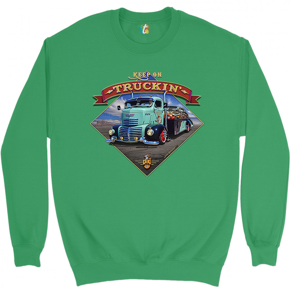 KEEP ON TRUCKIN' sweatshirt route 66 retro vintage truck driver crewneck green