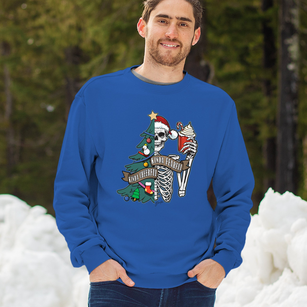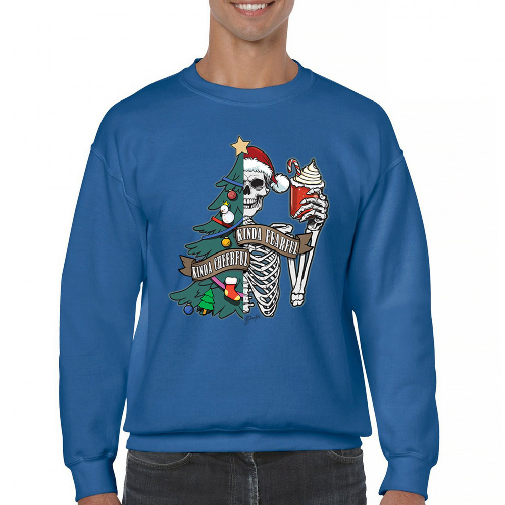 This creative Kinda Cheerful, Kinda Fearful design is a perfect blend of festive and spooky fun! Featuring a half-decorated Christmas tree and skeleton, it’s ideal for those who love combining Halloween and Christmas vibes. Great for secret Santa gifts, matching holiday pajamas, or rocking at your next ugly sweater contest. Perfect for office parties, family mornings, or simply adding some unique charm to your Feliz Navidad celebrations.