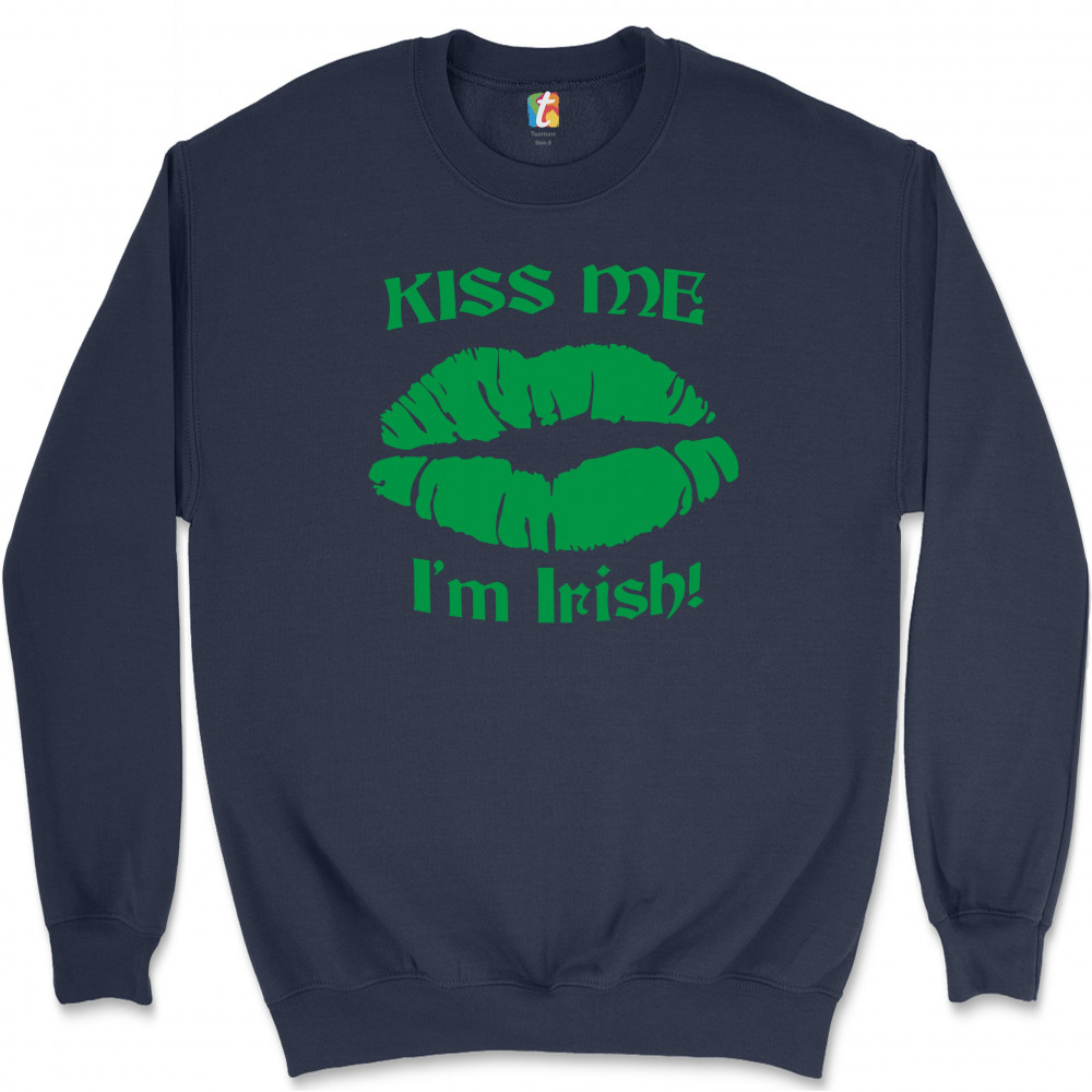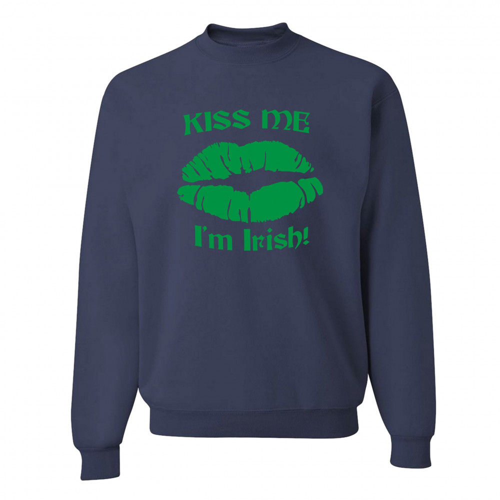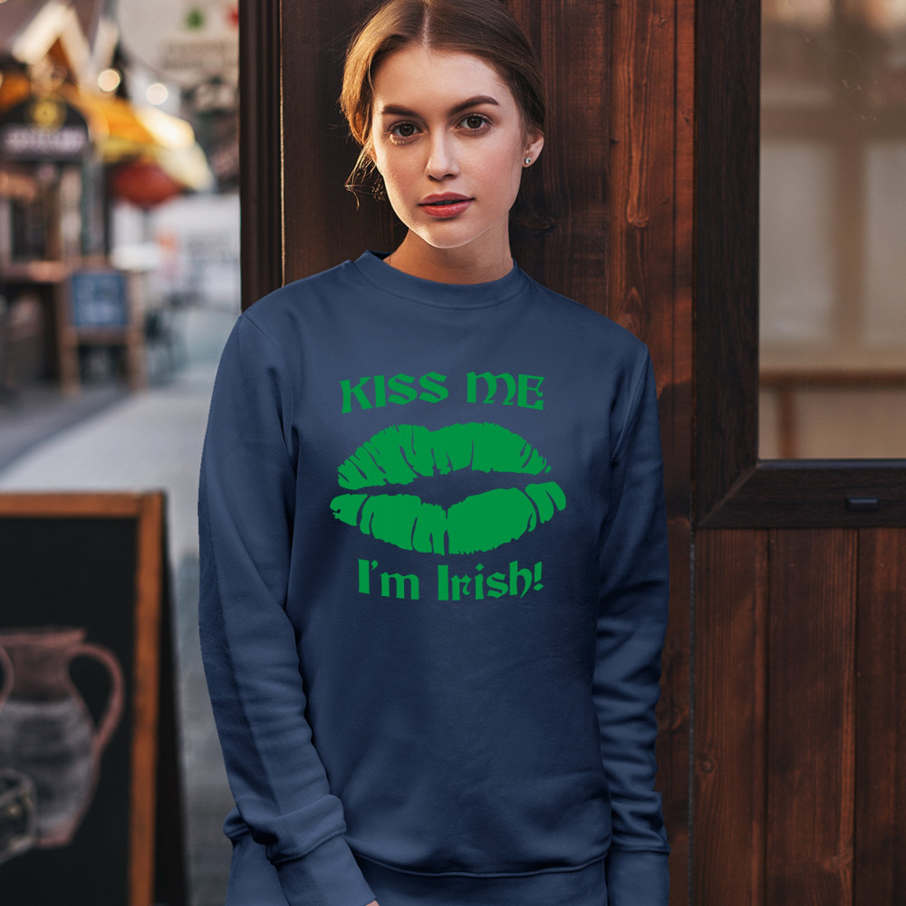 KISS ME I'M IRISH! sweatshirt funny st. patrick's day shenanigans crewneck navy blue