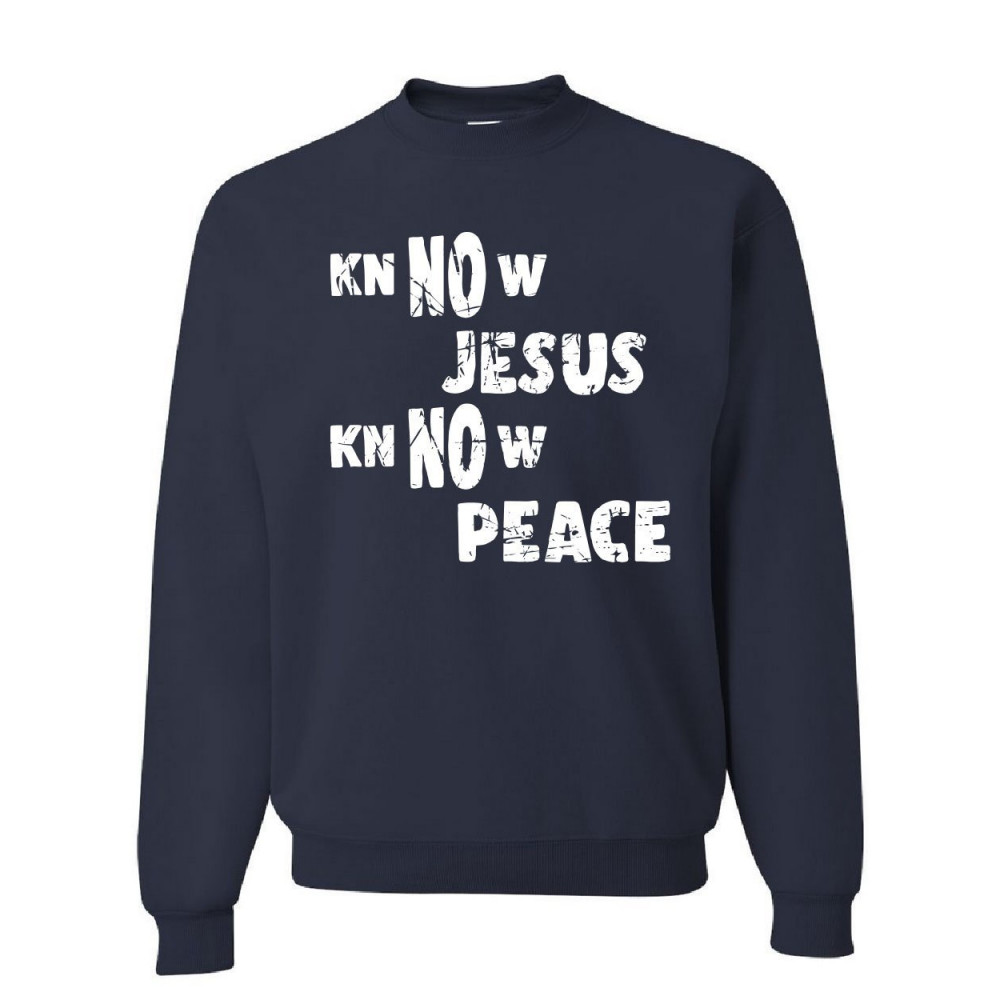 KNOW JESUS KNOW PEACE sweatshirt religion christian catholic faith sweater navy blue