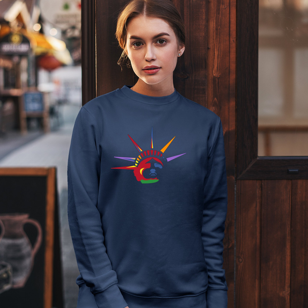 LADY LIBERTY sweatshirt patriotic new york statue of liberty july 4th crewneck navy blue
