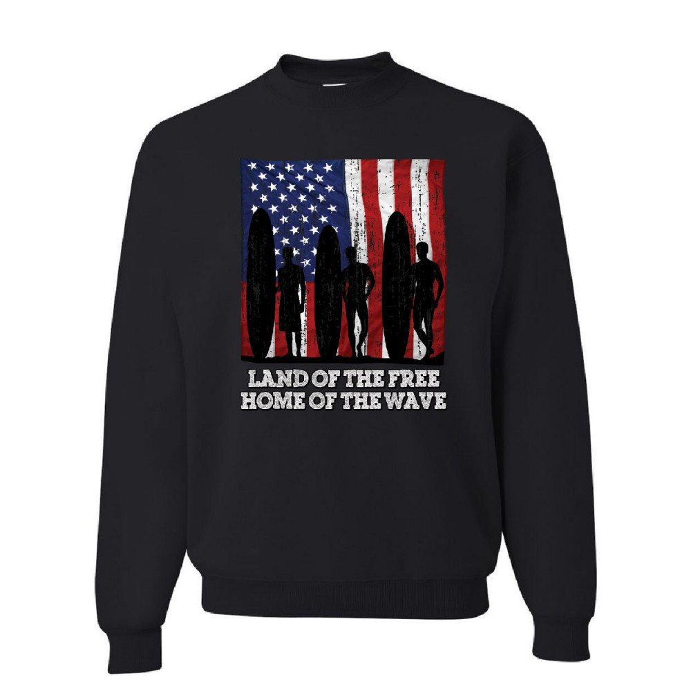 LAND OF THE FREE SURFING crew neck sweatshirt home of the wave beach black