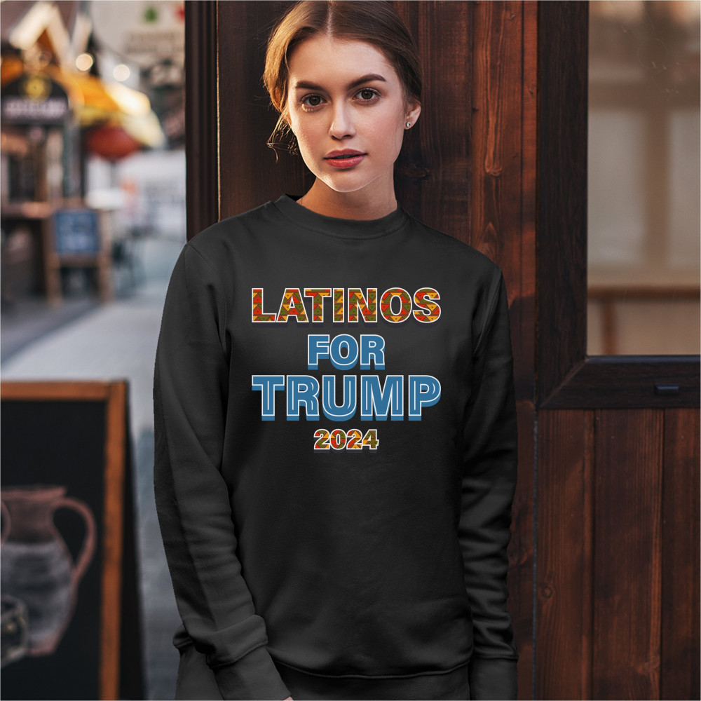 LATINOS FOR TRUMP 2024 sweatshirt keep america great conservative maga crewneck black