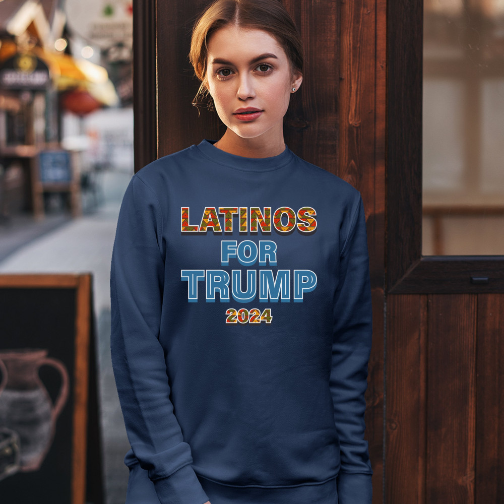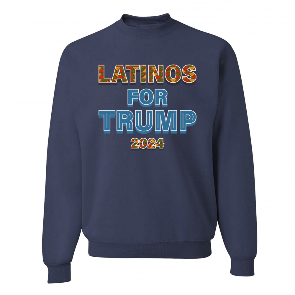 LATINOS FOR TRUMP 2024 sweatshirt keep america great conservative maga crewneck navy blue