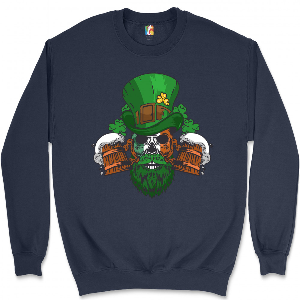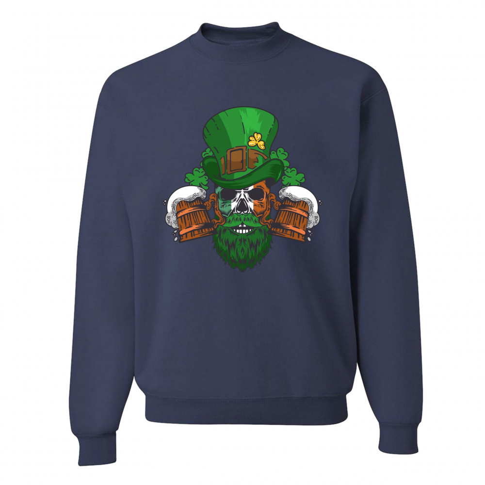LEPRECHAUN SKULL BEER MUGS sweatshirt irish flag st. patrick's day crewneck navy blue