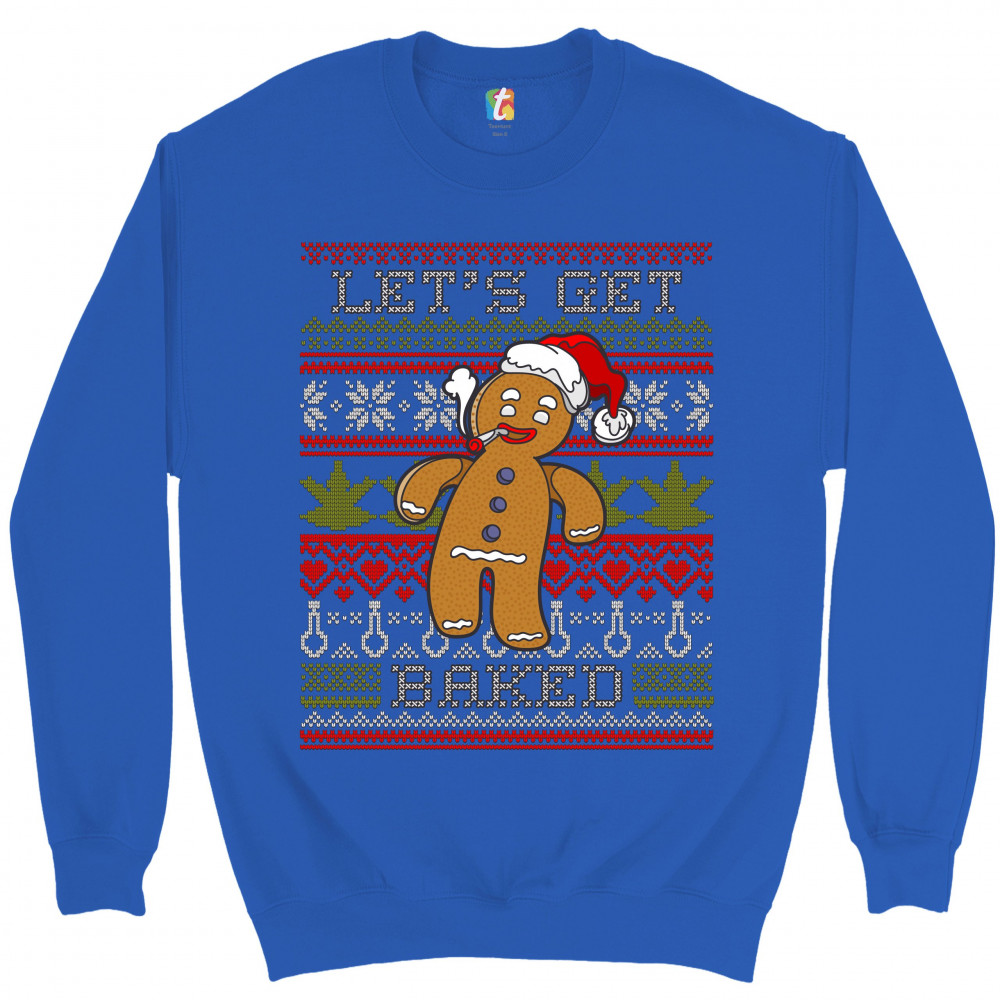LET'S GET BAKED sweatshirt ugly sweater gingerbread man 420 marijuana crewneck royal blue