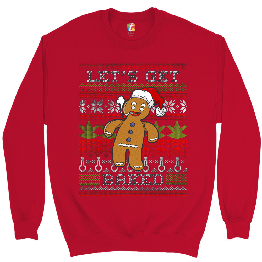 LET'S GET BAKED sweatshirt ugly sweater gingerbread man 420 marijuana crewneck red
