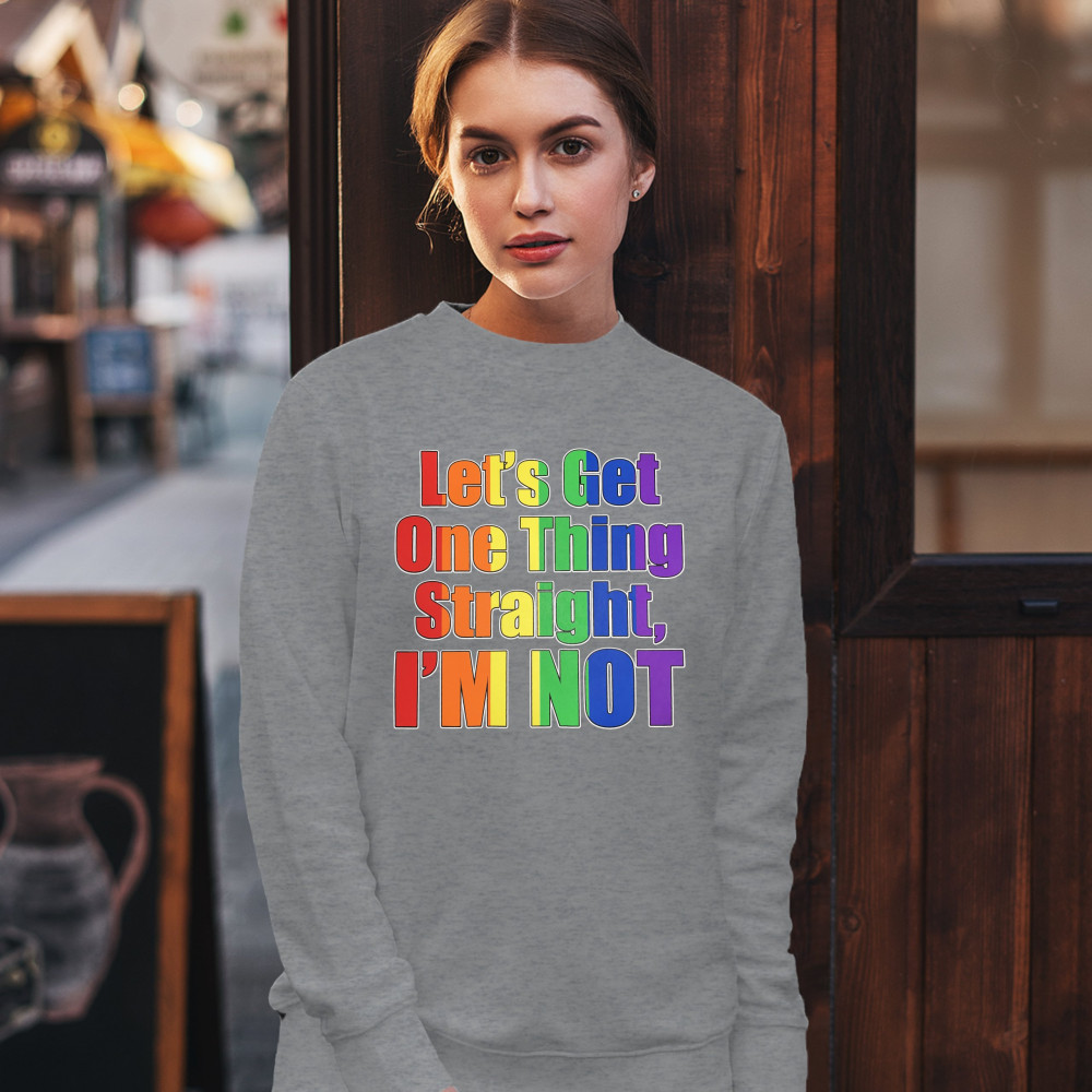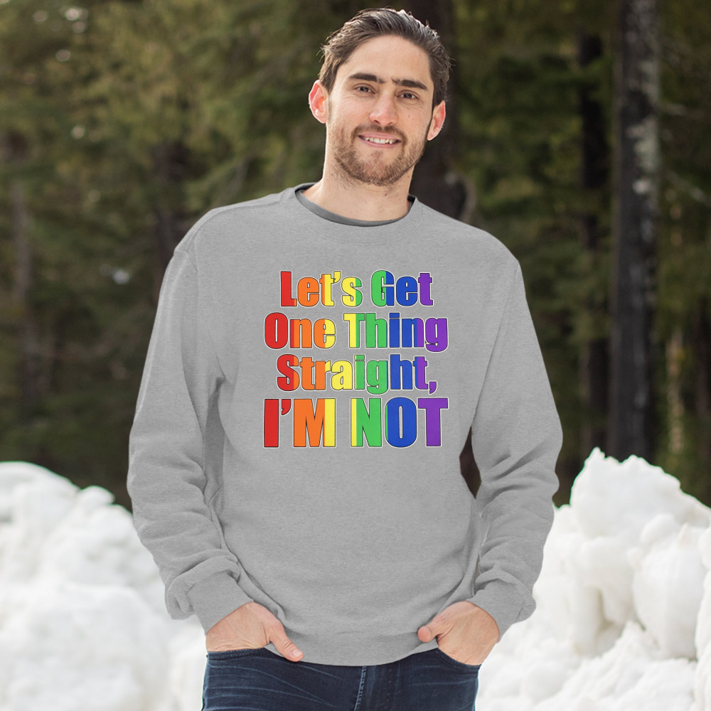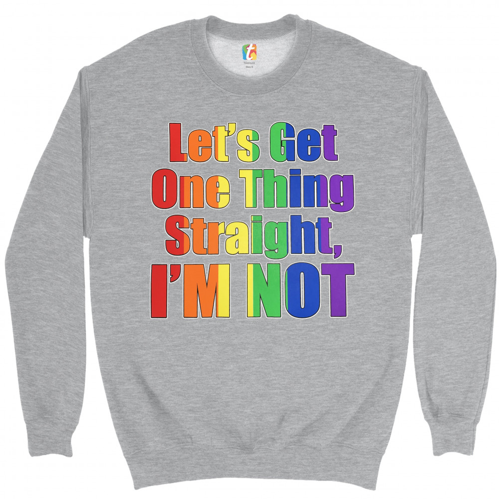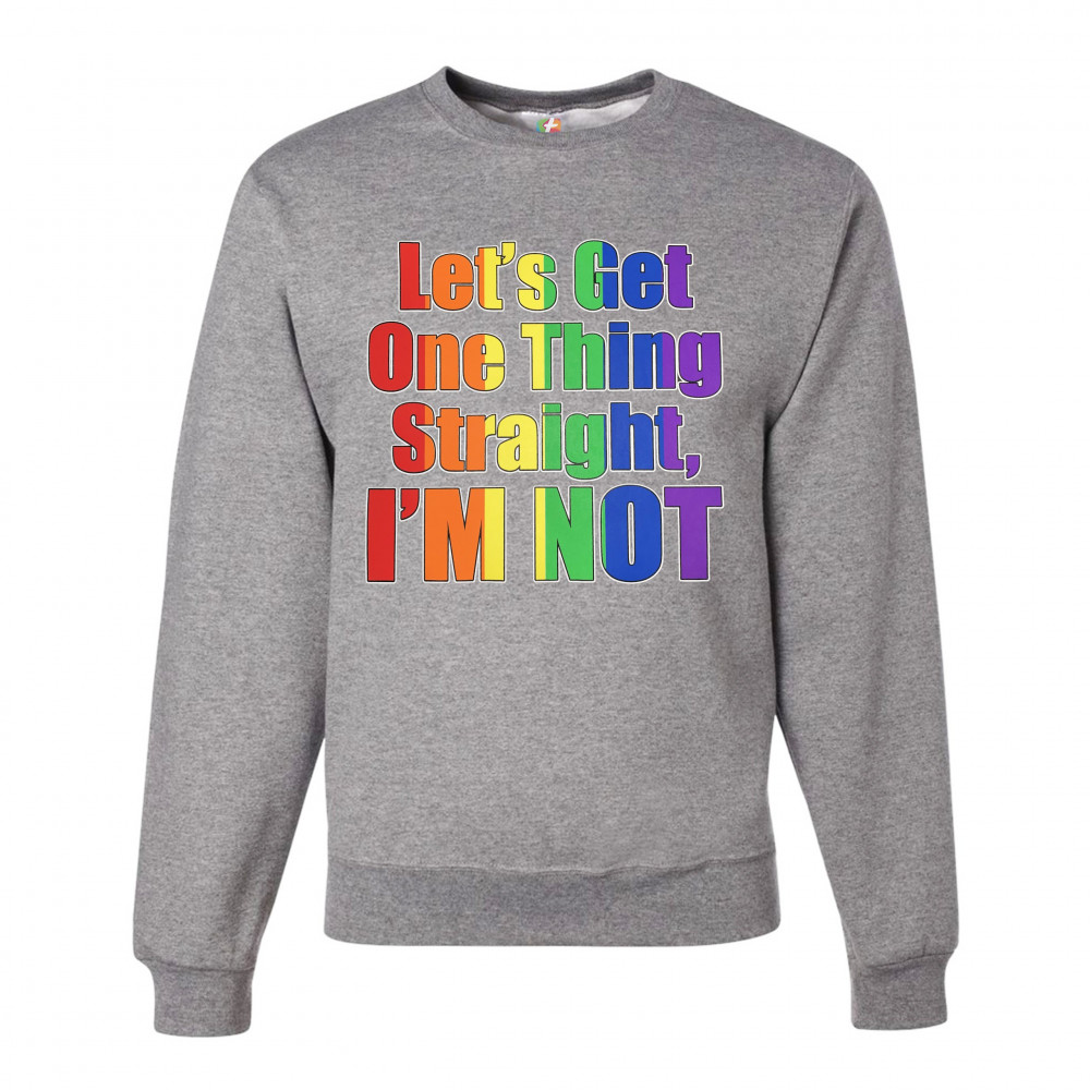 LET'S GET ONE THING STRAIGHT, I'M NOT sweatshirt lgbt gay rainbow crewneck gray