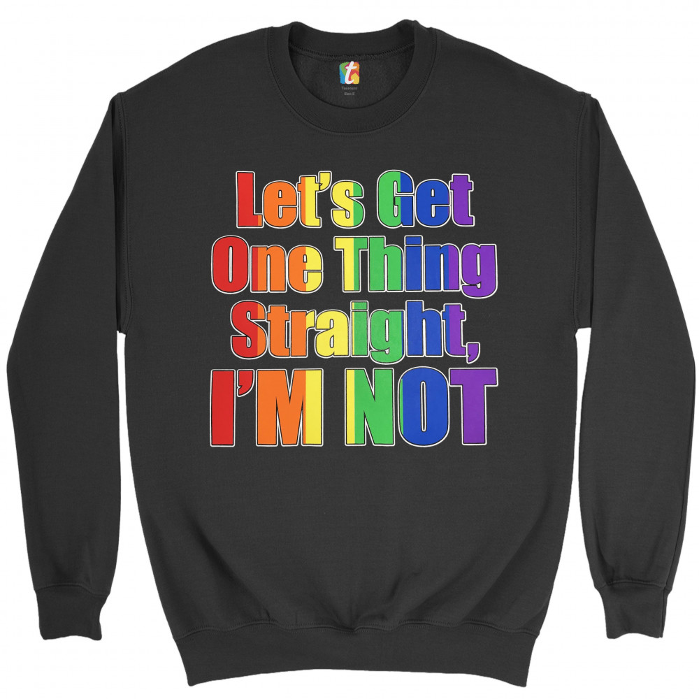 LET'S GET ONE THING STRAIGHT, I'M NOT sweatshirt lgbt gay rainbow crewneck black