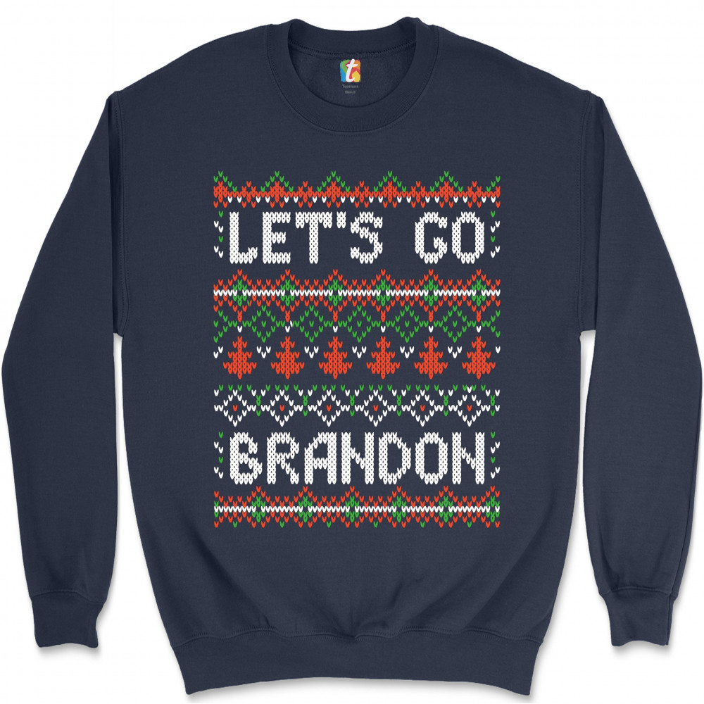 LET'S GO BRANDON sweatshirt ugly sweater christmas funny anti biden crewneck navy blue