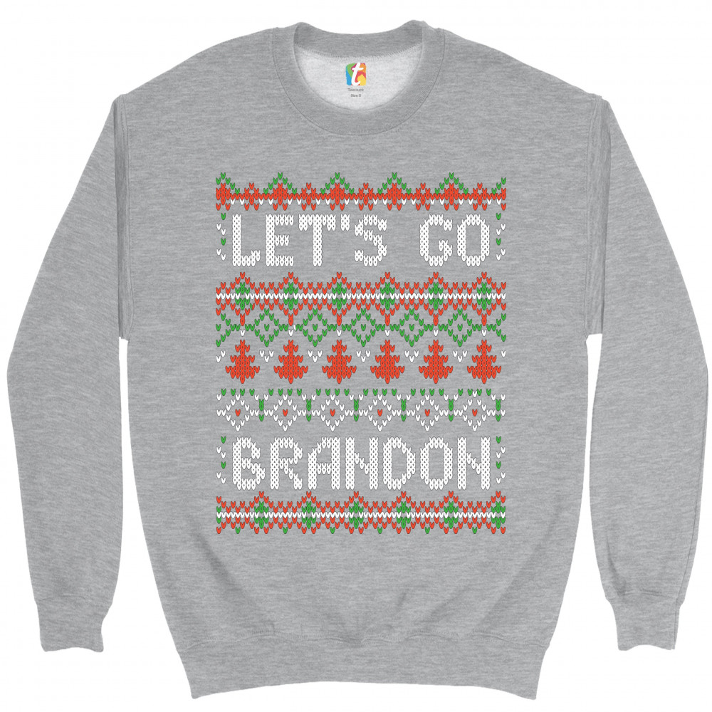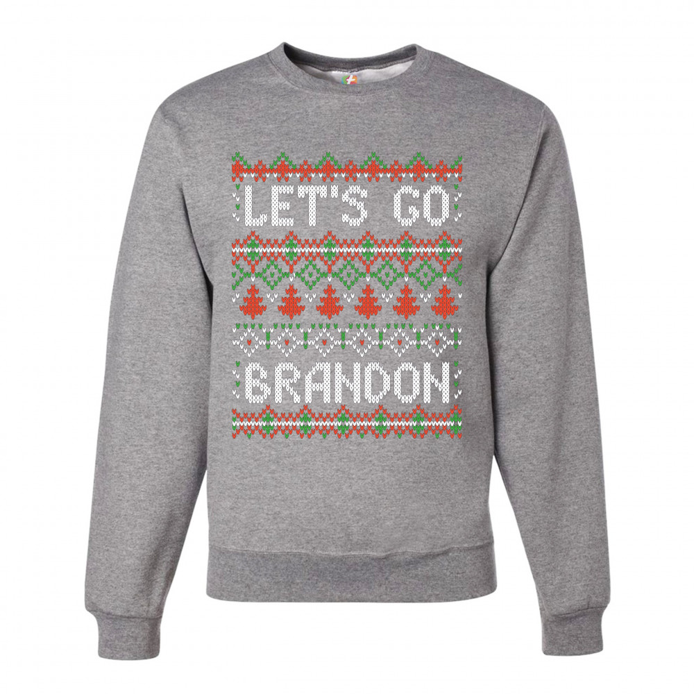 LET'S GO BRANDON sweatshirt ugly sweater christmas funny anti biden crewneck gray