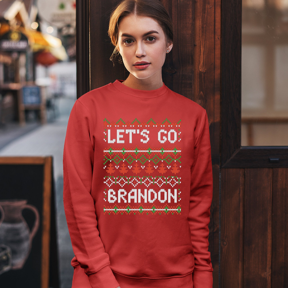 LET'S GO BRANDON sweatshirt ugly sweater christmas funny anti biden crewneck red